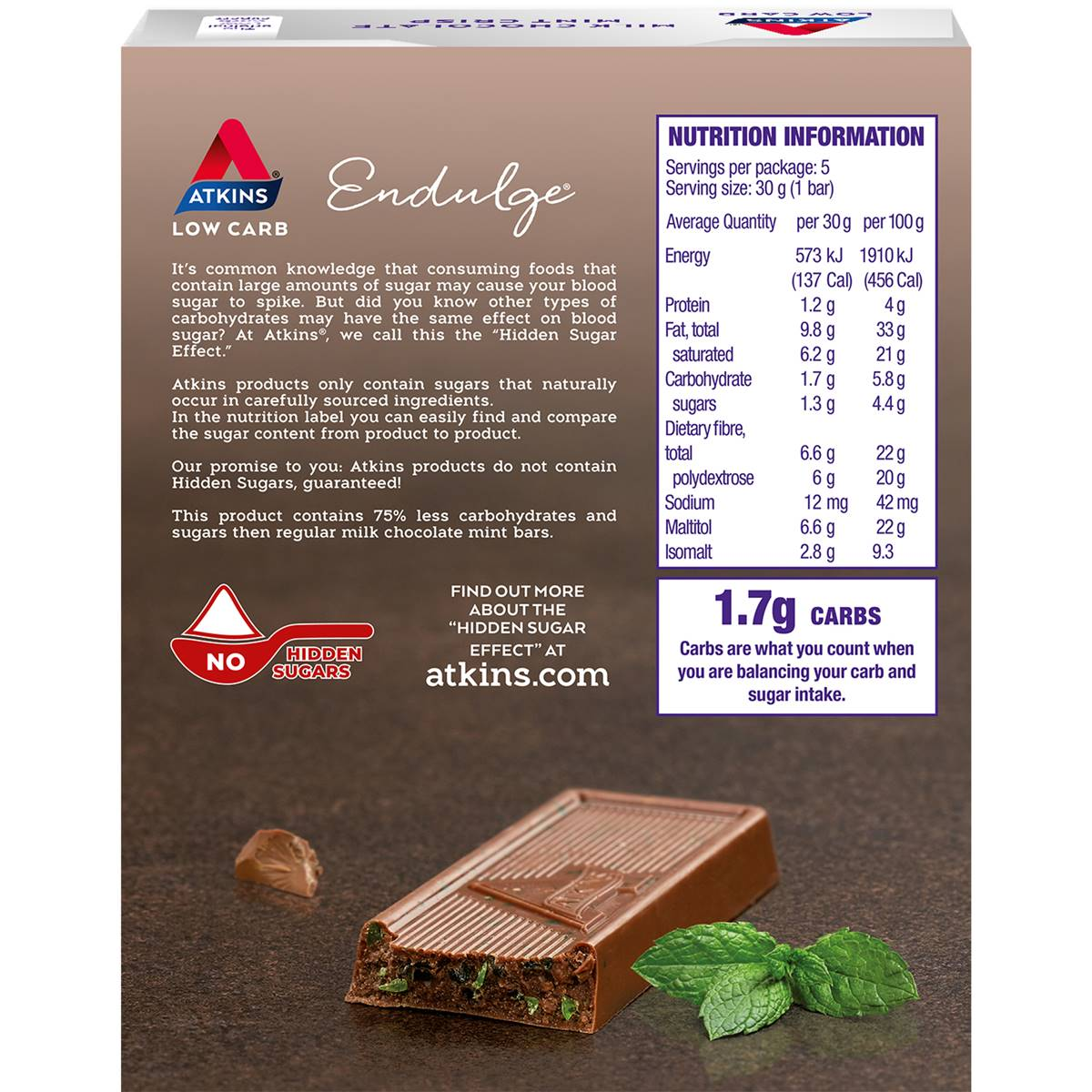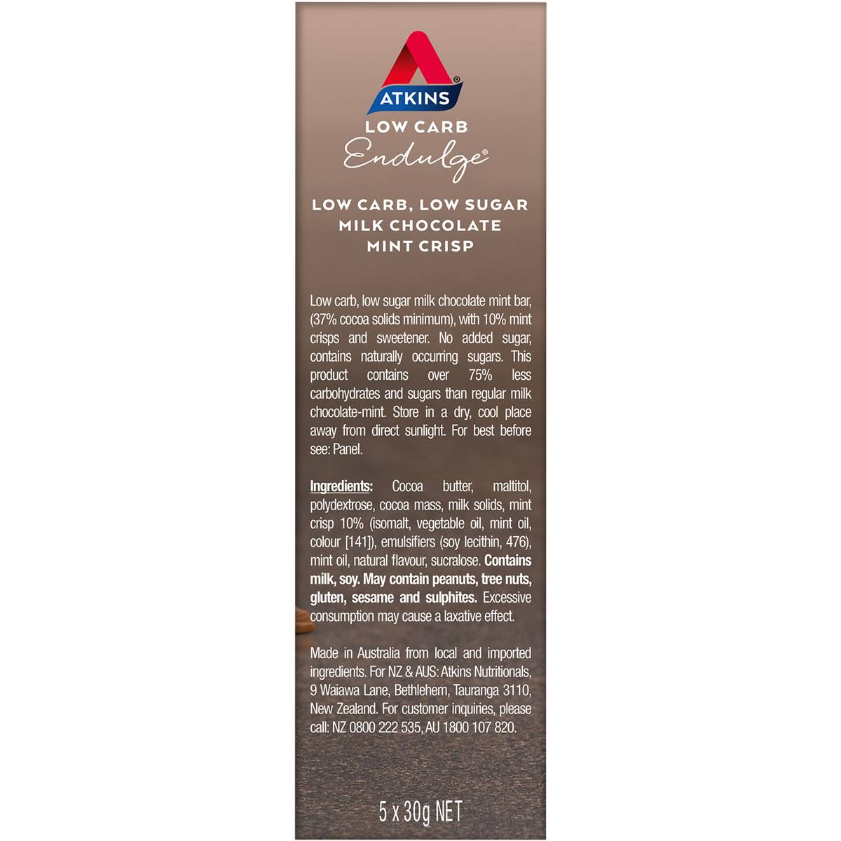 The Atkins Milk Chocolate Mint Crisp bar is perfect for all you chocolate mint lovers. Made with crunchy mint crisps and surrounded by creamy milk chocolate, this bar is the perfect low sugar treat!
