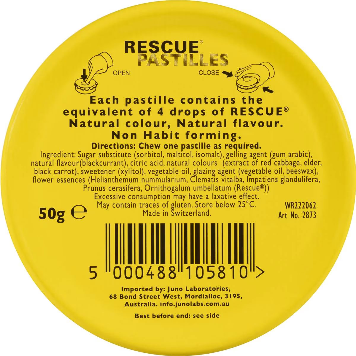 Each pastille contains the equivalent of 4 drops of Rescue® Natural colour, Natural flavour. Non habit forming.