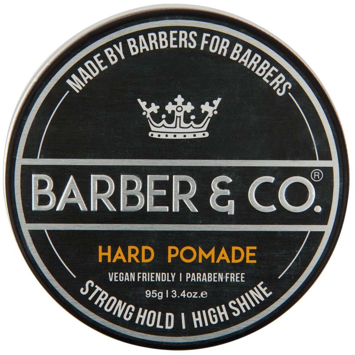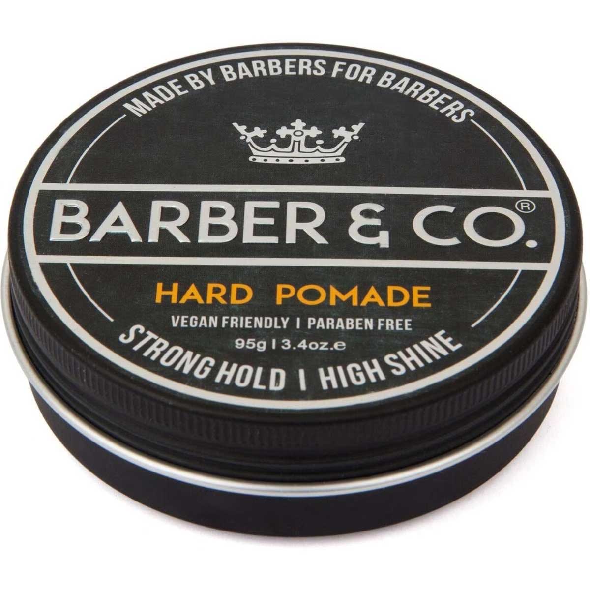 The Barber & Co. Hard Pomade Strong Hold High Shine, to keep your hair styled how you like it all day long.
