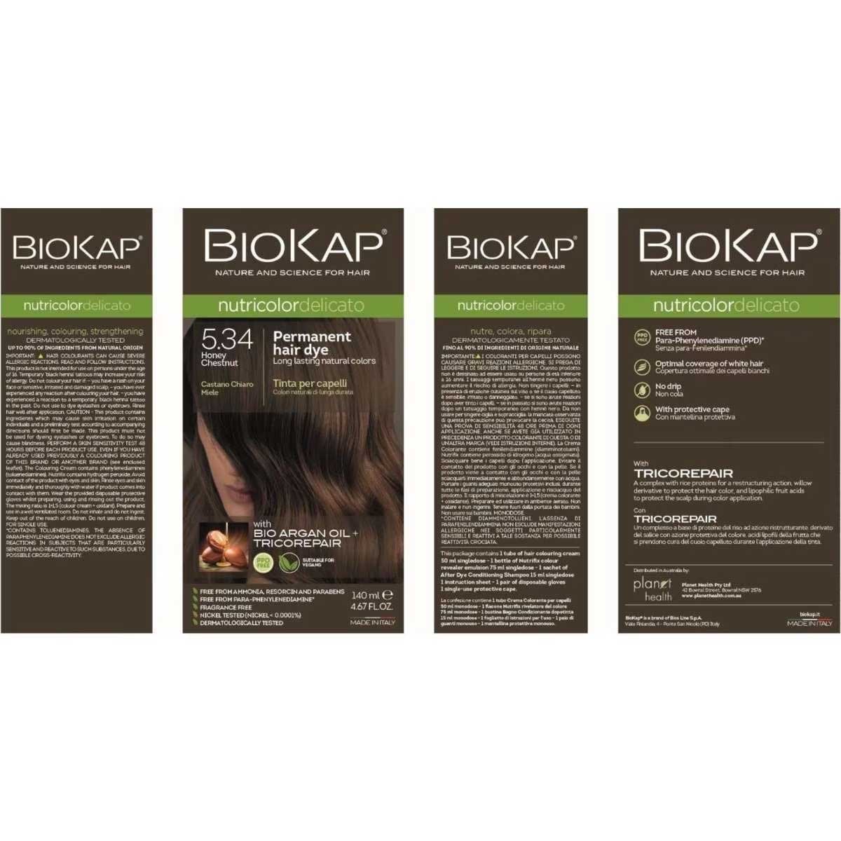 BioKap Nutricolor Delicato hair dyes nourish and repair hair during the colouring process, giving a warm, shiny and natural colour. They are enriched with TRICOREPAIR complex and the precious bio ARGAN OIL, known also as “Desert Gold” for its highly valued cosmetic properties.