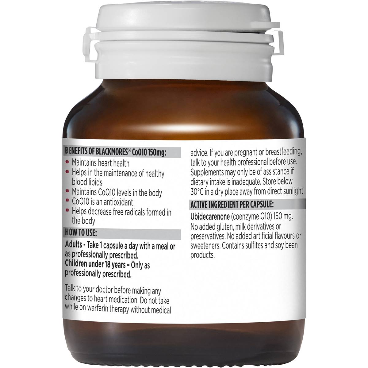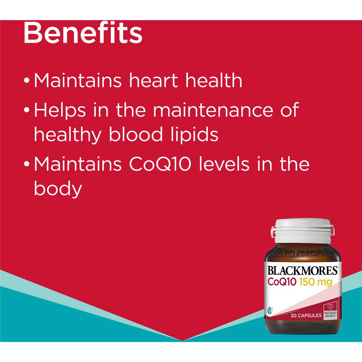 Blackmores CoQ10 150mg is a source of coenzyme Q10 (CoQ10), an antioxidant which maintains heart health and healthy blood lipids. Heart