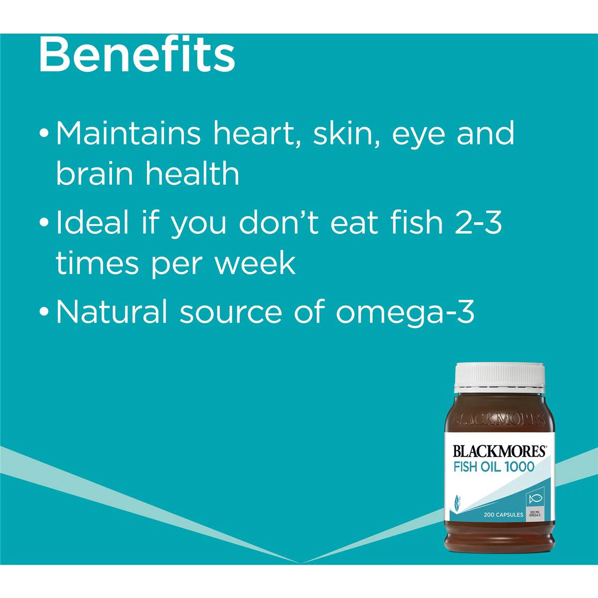 If your diet is low in fish, get the nutrient support you need with Blackmores Fish Oil 1000. These capsules provide a high-quality natural source of omega-3 to help maintain the health of your heart, skin, eyes and brain.
