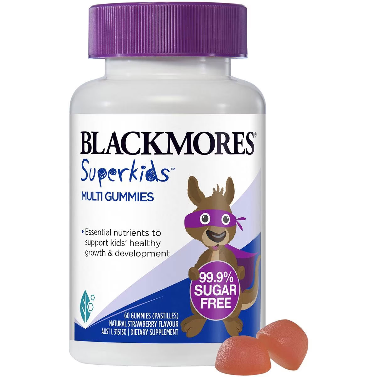 Blackmores Superkids™ Multi Gummies are a 99.9% sugar-free strawberry flavoured formulation to support kids’ healthy growth & development.