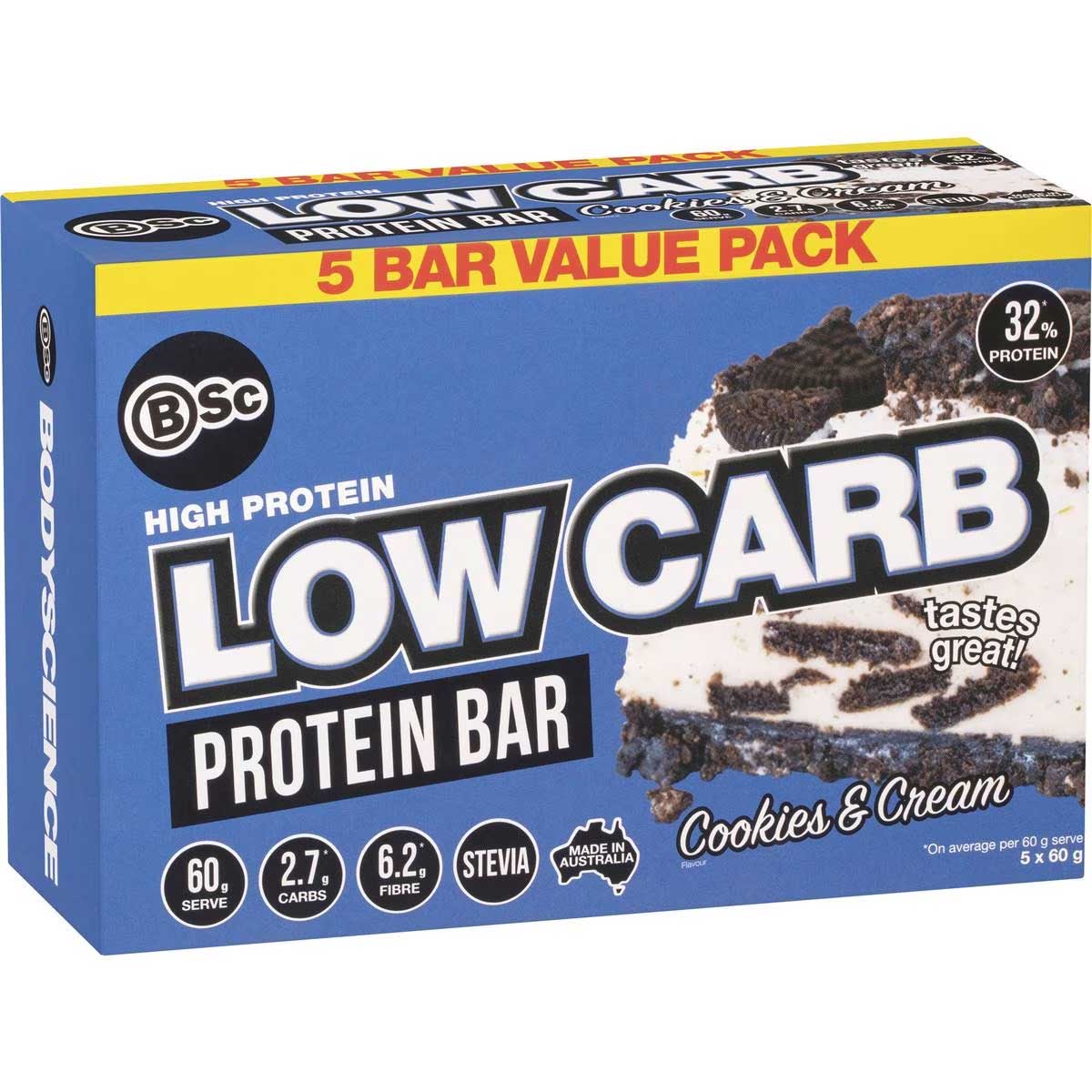 Bsc Body Science High Protein Low Carb Bar Multi Pack Cookies & Cream 60g X 5pk