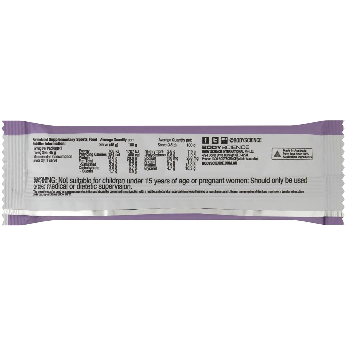 WARNING: Not suitable for children under 15 years of age or pregnant women: Should only be used under medical or dietetic supervision. This product is not to be used as a sole source of nutrition and should be consumed in conjunction with a nutritious diet and an appropriate physical training or exercise program. Excess consumption of this food may have a laxative effect.