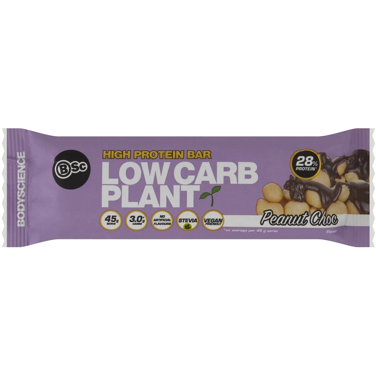 Bsc Body Science High Protein Low Carb Plant Bar Peanut Choc 45g
