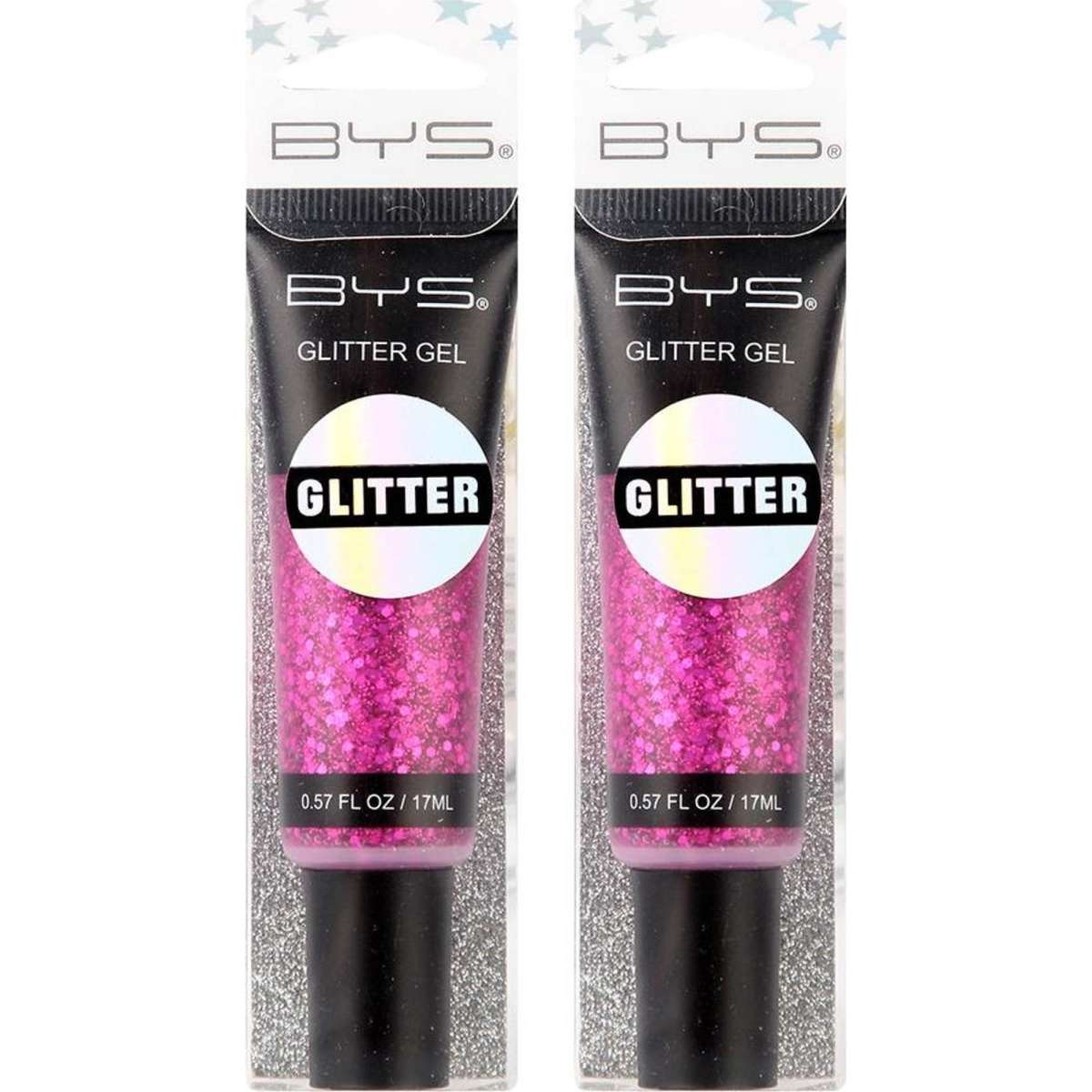 2PK BYS Pink Glitter 17ml Gel Skin/Hair Makeup