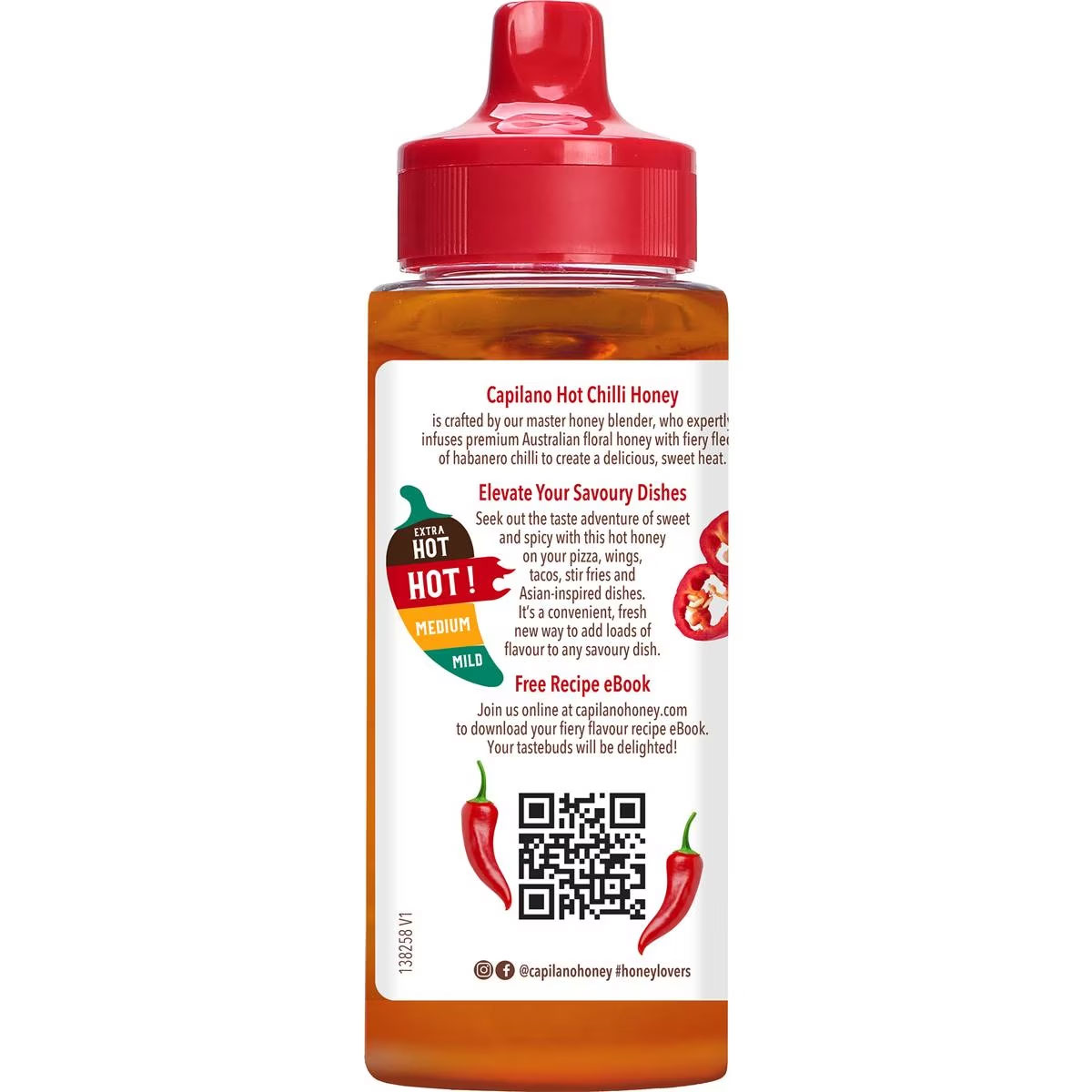 Capilano Hot Chilli Honey is crafted by our master honey blender, who expertly infuses premium Australian floral honey with fiery flecks of habanero chilli to create a delicious, sweet heat. Seek out the taste adventure of sweet and spicy with this hot honey on your pizza, wings, tacos, stir fries and Asian-inspired dishes. It’s a convenient, fresh new way to add loads of flavour to any savoury dish.