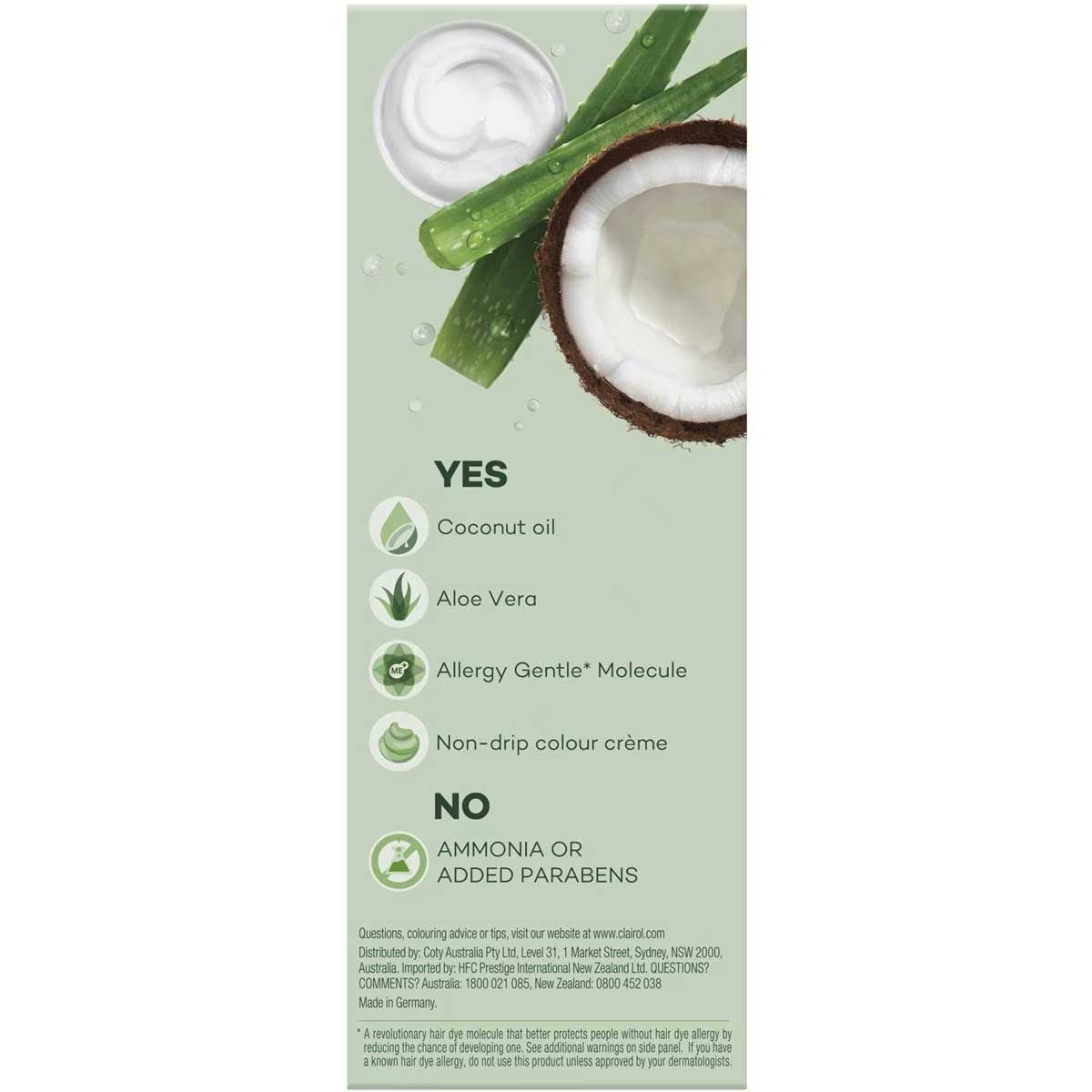 This semi-permanent colour includes coconut oil and aloe vera and is formulated without ammonia or added parabens. Blends away your greys and enhances your natural colour in only 20 minutes. Clairol Natural Instincts also features ME+ an allergy gentle molecule; A revolutionary hair dye molecule that better protects people without hair dye allergy by reducing the chance of developing one.