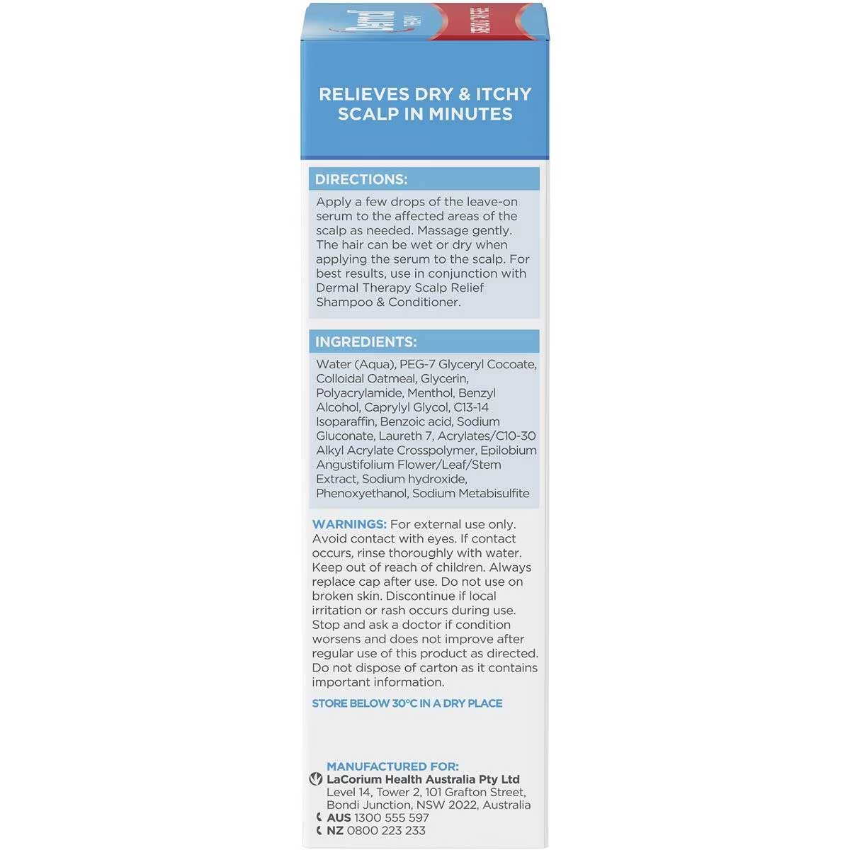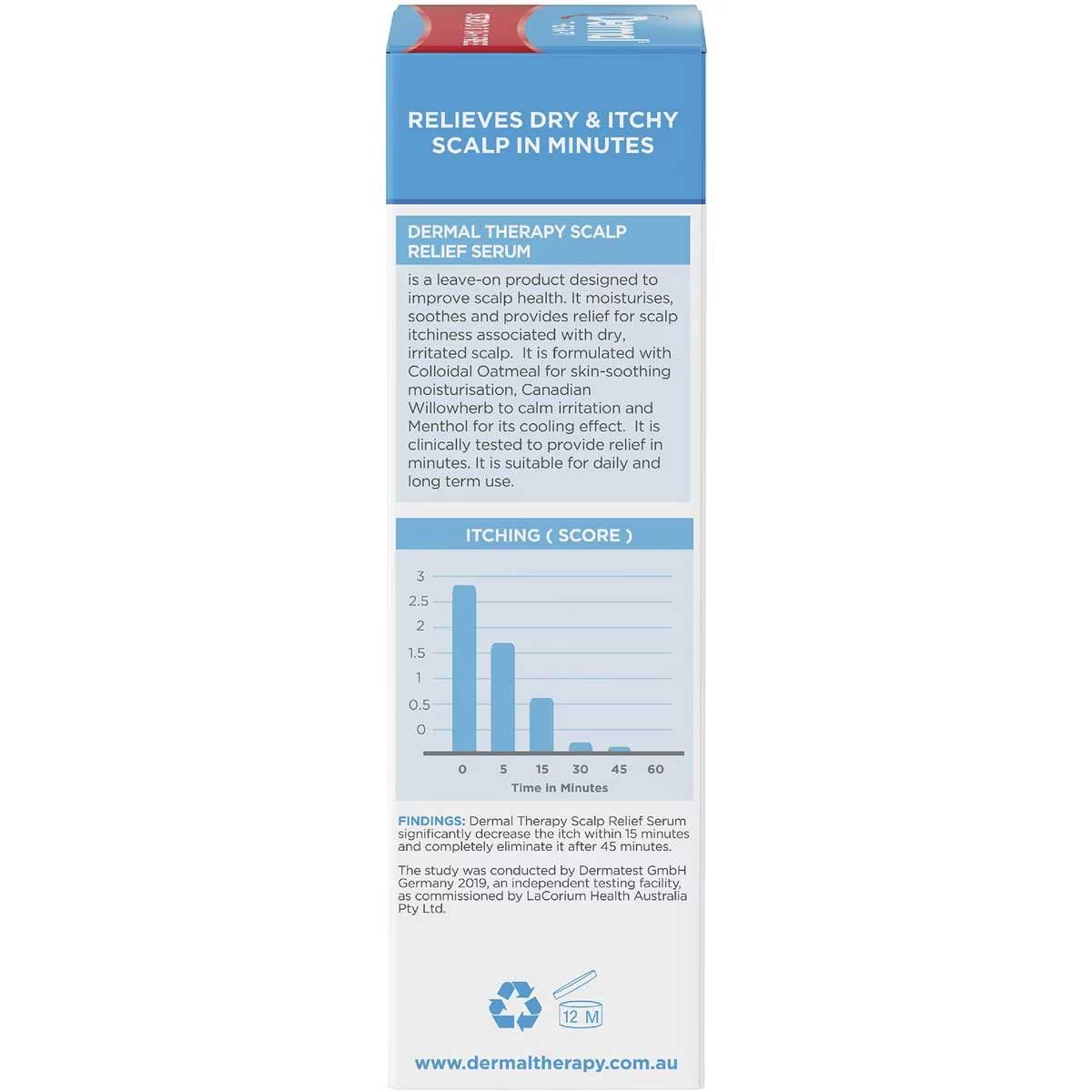 Dermal Therapy Scalp Relief Serumis a leave-on product designed to improve scalp health. It moisturises, soothes and provides relief for scalp itchiness associated with dry. irritated scalp. It is formulated with Colloidal Oatmeal for skin-soothing moisturisation, Canadian Willowherb to calm irritation and Menthol for its cooling effect. It is clinically tested to provide relief in minutes. It is suitable for daily and long term use.