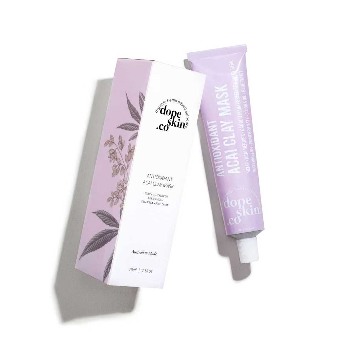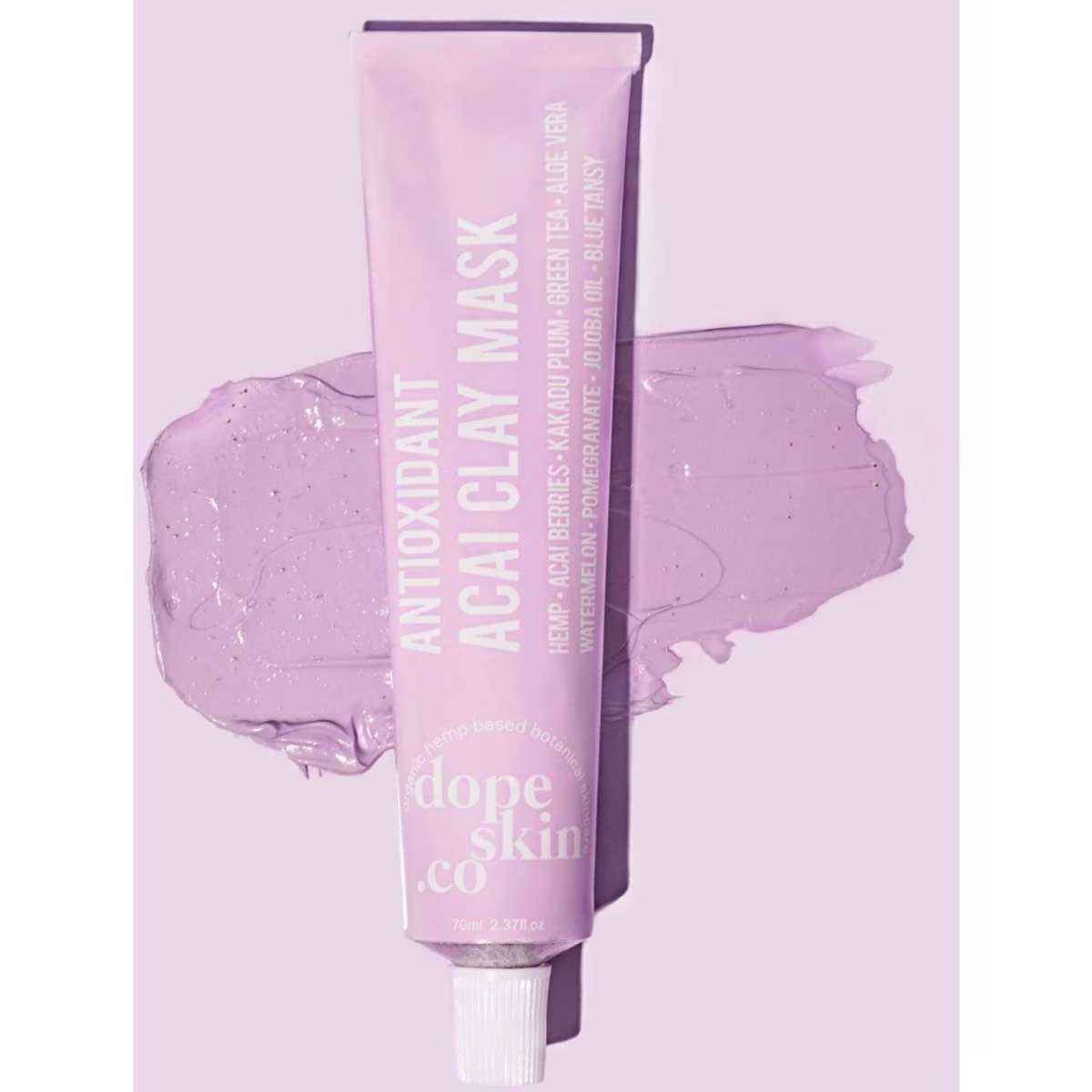 The Dope Skin Co Antioxidant Acai Clay Mask brightens, purifies & heals, without the drying your skin. The Acai extract works with vitamins B3 & B5, along with our antioxidant rich botanical extracts to heal damaged skin leaving your complexion instantly smoother, clearer and brighter. Why’s Hemp so Dope: Hemp is rich in antioxidants and essential fatty acids to nourish, moisturise and maintain skin health. Hemp creates a protective barrier preventing moisture loss, repairs stressed/dehydrated skin, reduces fine lines/wrinkles, reduces inflammation and is great for sensitive skin! Size: 70ml How to Use: Use two to three times a week after cleansing, apply to your face, allow 10 minutes for the goodies to absorb and do their job, wash off with warm water PH Balanced | Pregnancy Safe | Non-Toxic | Vegan | Cruelty-Free Organic Hemp Skincare, made fresh in Australia from natural, cruelty-free & vegan friendly ingredients! No Parabens, Phthalates, Formaldehydes, Silicones, Sulfates, Mineral Oils or Synthetic Fragrance or Colours.