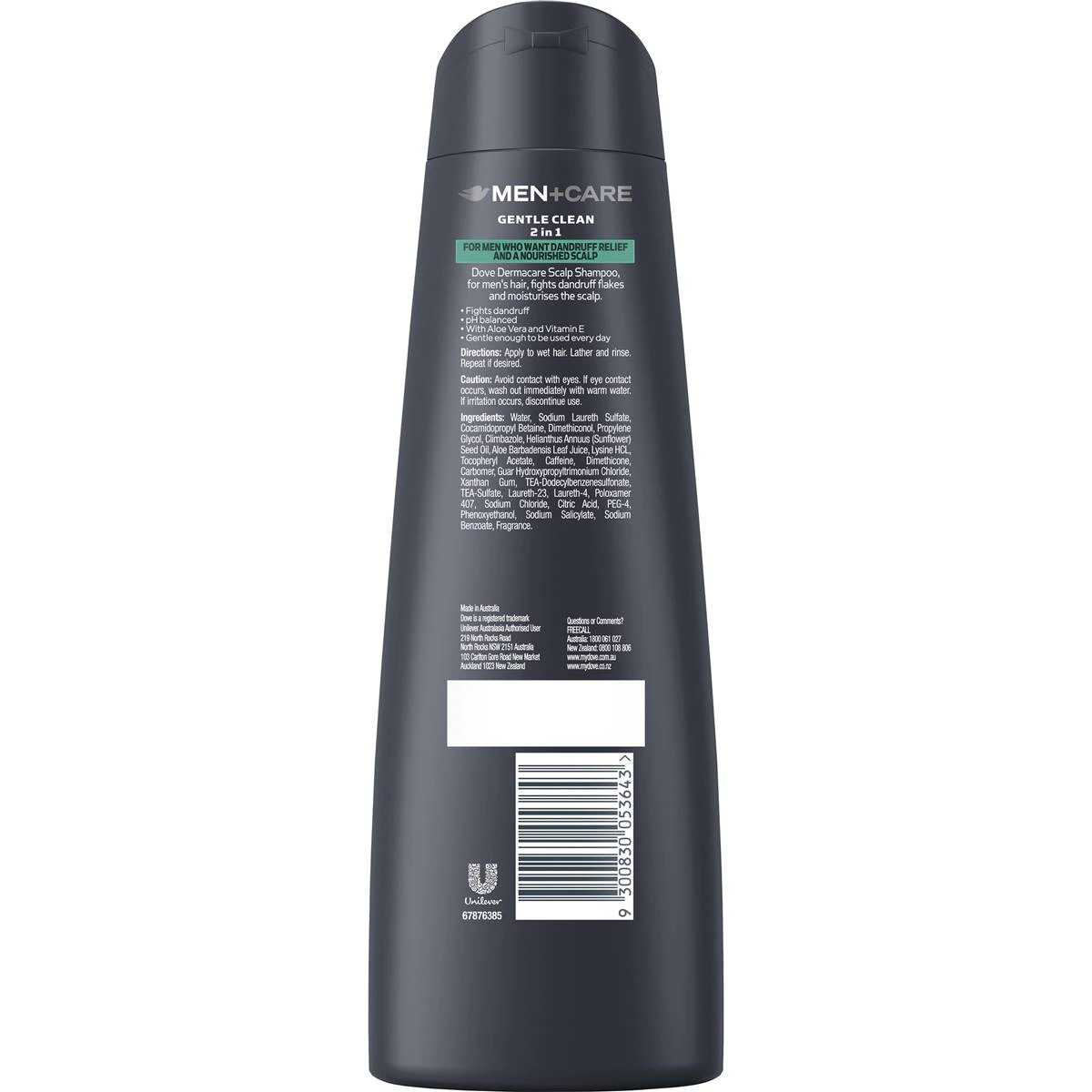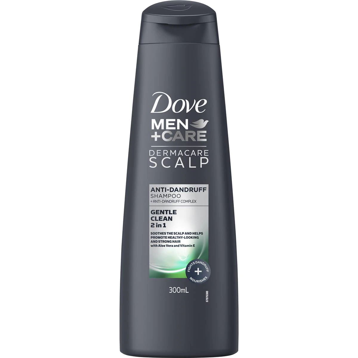 Dove Men+Care Dermacare Scalp Gentle Clean 2 In 1 fights Dandruff + Nourishes the scalp. Designed for men who want dandruff relief and a nourished scalp, it fights dandruff flakes and moisturises the scalp. Formulated with Aloe Vera and Vitamin E, as well as being pH balanced, the product fights dandruff while being gentle enough to be used everyday. Directions: Apply to wet hair. Lather and rinse. Repeat if desired.