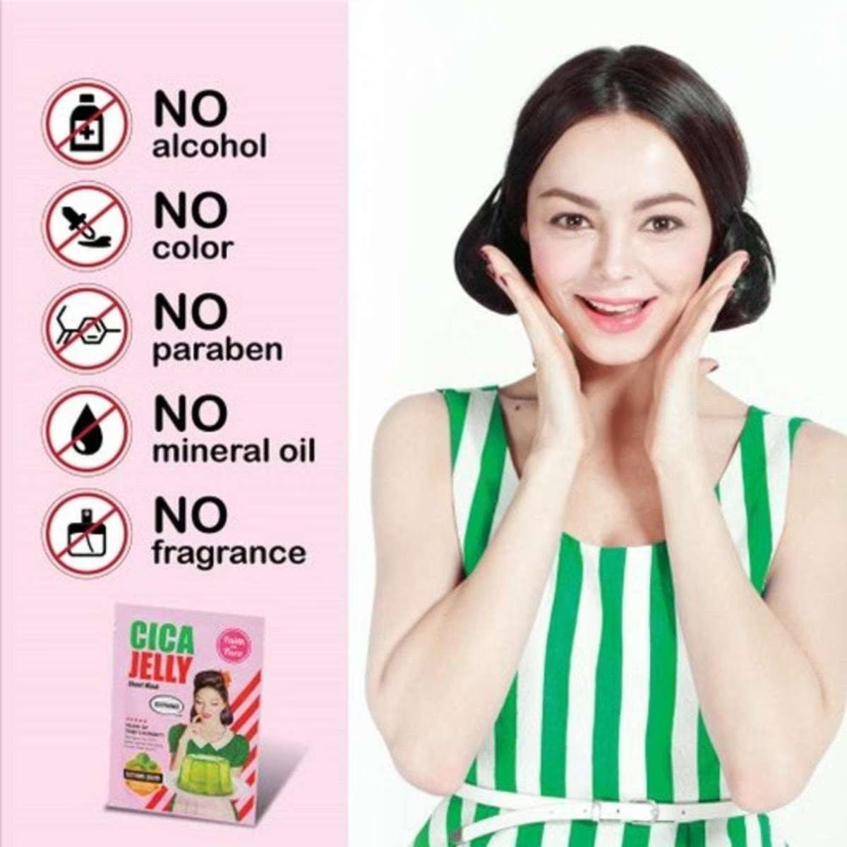 • ✔️ KEY FEATURES OF CICA JELLY MASK SHEET – Jelly texture essence with containing high-enriched Cica(Centella Asiatica) is the so called as 3rd generation of jelly mask. Breathable air-hole technology sheets provide perfect adhesion to your skin without stuffy and suffocation feeling.