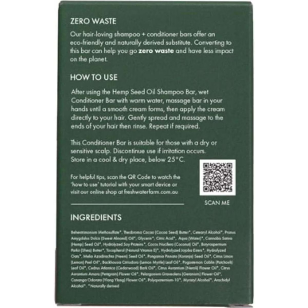 Each conditioner bar allows up to 100 washes dependent on your hair’s thickness and length.