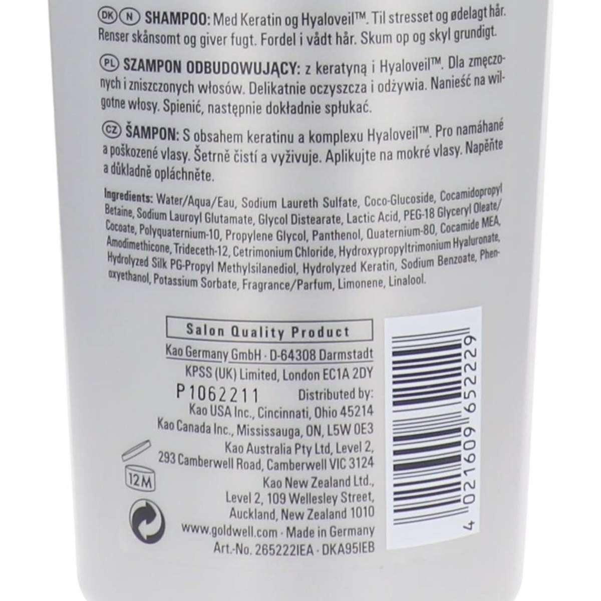 Water / Aqua / Eau, Sodium Laureth Sulfate, Coco, Glucoside, Cocamidopropyl Betaine, Sodium Lauroyl Glutamate, Glycol Distearate, PEG, 18 Glyceryl Oleate/Cocoate, Lactic Acid, Polyquaternium, 10, Hydrolyzed Keratin, Hydroxypropyltrimonium Hyaluronate, Panthenol, Sodium Chloride, Quaternium, 80, Propylene Glycol, Amodimethicone, Cocamide MEA, Silicone Quaternium, 22, PPG, 3 Myristyl Ether, Hydrolyzed Silk PG, Propyl Methylsilanediol, Sodium Acetate, Trideceth, 12, Cetrimonium Chloride, Isopropyl Alcohol, Butylene Glycol, Sodium Benzoate, Benzoic Acid, Phenoxyethanol, Fragrance / Parfum, Limonene, Linalool