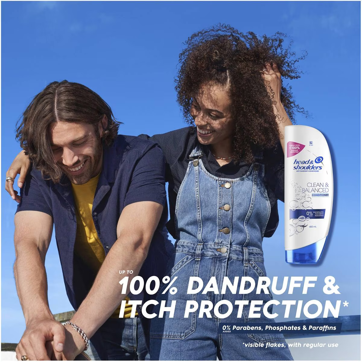 Looking for a solution to fight dandruff* with a lasting effect? Use Head & Shoulders Clean & Balanced Conditioner, Australia’s #1 Anti Dandruff Shampoo^ and Dermatologists’ Recommended Brand+. Our clinically proven technology provides up to 100% dandruff* and itch protection**, while staying gentle on your scalp and hair. With 0% Added Paraben, Phosphate and Paraffins added, this pH balanced formula is designed for every wash as part of your haircare routine.