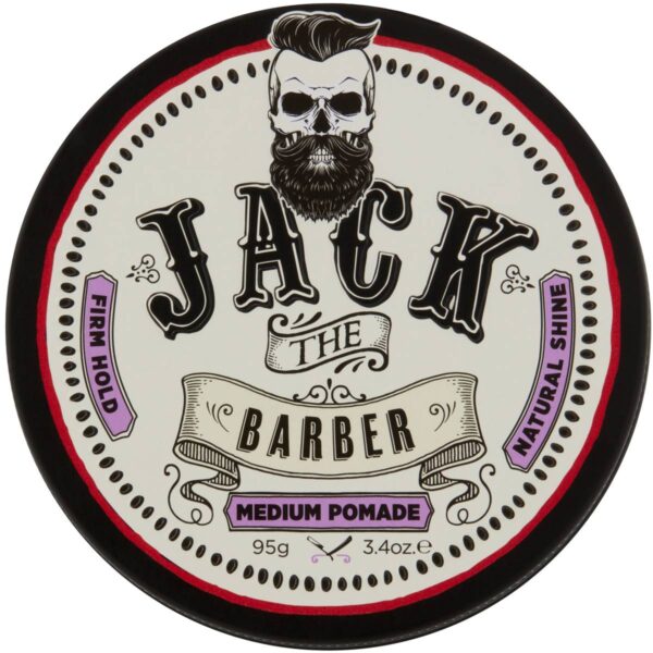 Jack The Barber Medium Pomade delivers a firm hold with natural shine, offering superior performance to achieve your desired look. Washes out easily.