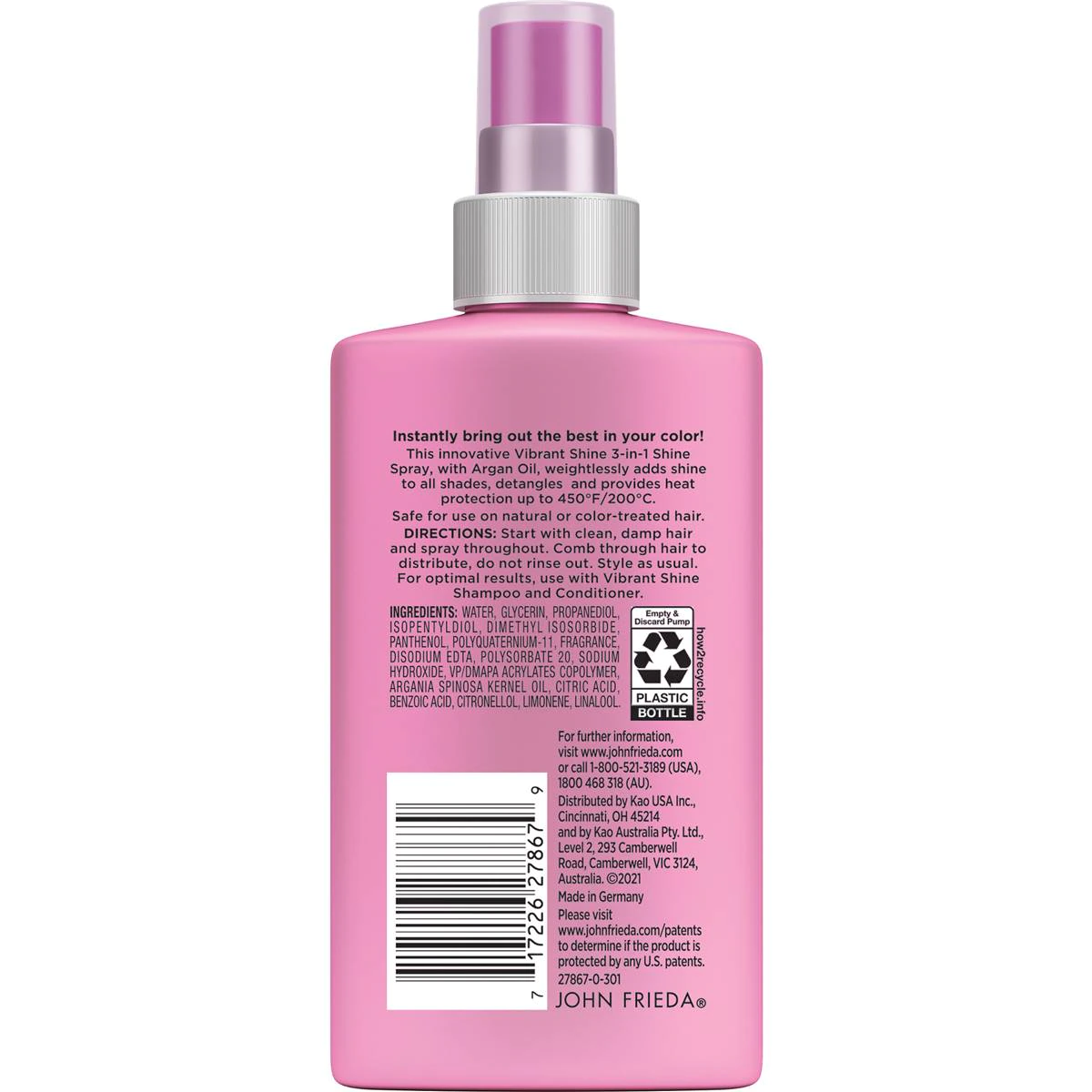 Enhanced with Argan Oil, John Frieda’s Vibrant Shine 3-in-1 Spray acts as an all-in-one detangling spray, heat protectant, and glossy hair treatment. Safe for use on natural or colour-treated hair. This hair shine treatment is free of parabens and sulfates.