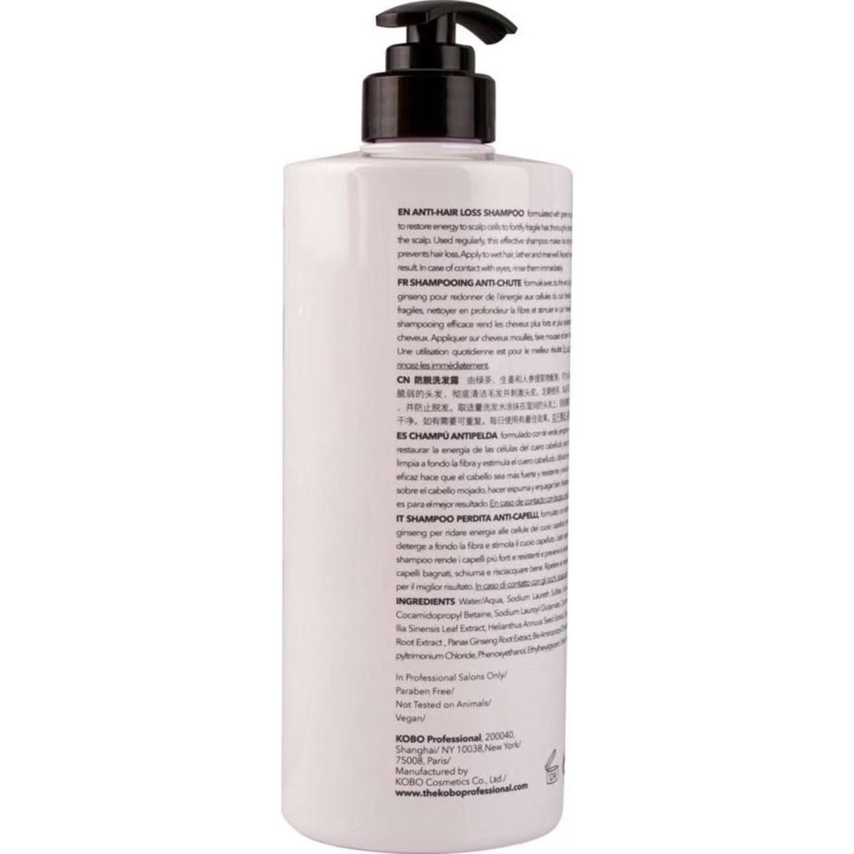 ANTI-HAIR LOSS SHAMPOO, formulated with green tea, ginger and ginseng extract to restore energy to scalp cells to fortify fragile hair, thoroughly cleanses the fiber and stimulates the scalp. Used regularly, this effective shampoo makes hair stronger and more resistant and prevents hair loss. Apply to wet hair, lather and rinse well. Repeat if necessary. Daily use is for best result. In case of contact with eyes, rinse them immediately.