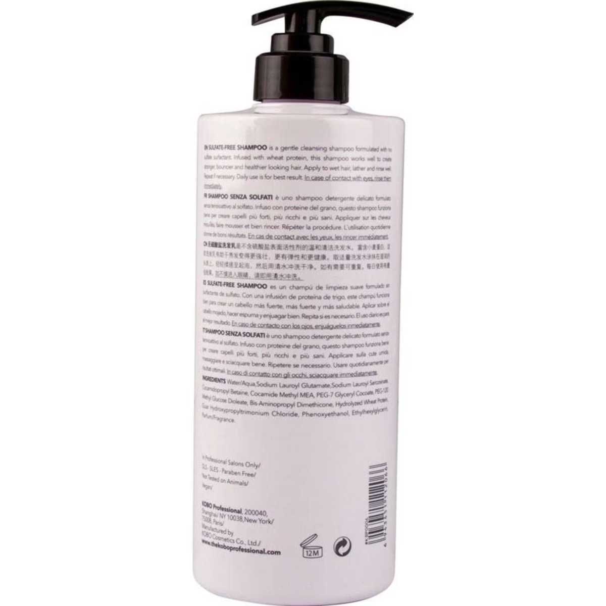 SULFATE-FREE SHAMPOO is a gentle cleansing shampoo formulated with no sulfate surfactant. Infused with wheat protein, this shampoo works well to create stronger, bouncier and healthier looking hair. Apply to wet hair, lather and rinse well. Repeat if necessary. Daily use is for best result. In case of contact with eyes, rinse them immediately.