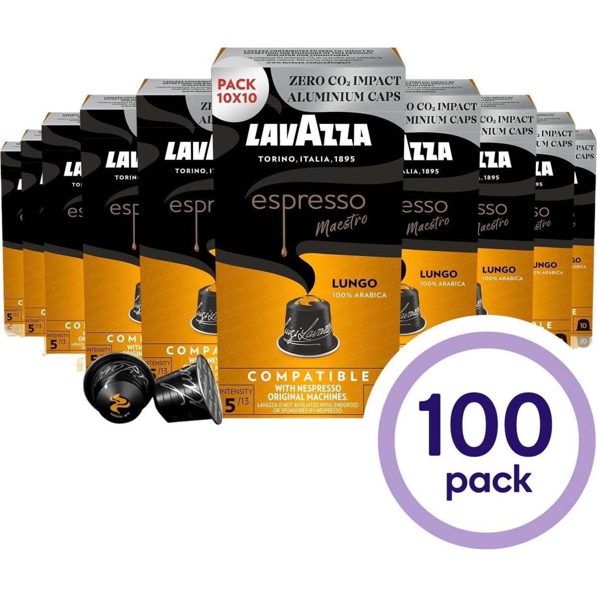 Espresso Maestro Lungo offers fruity notes artfully blended with a floral flavour that is perfect for your morning long black. – Intensity: 5/13 – Aroma: Floral, Fruits – Roast: Light – Blend: 100% Arabica Pack of 100 capsules.