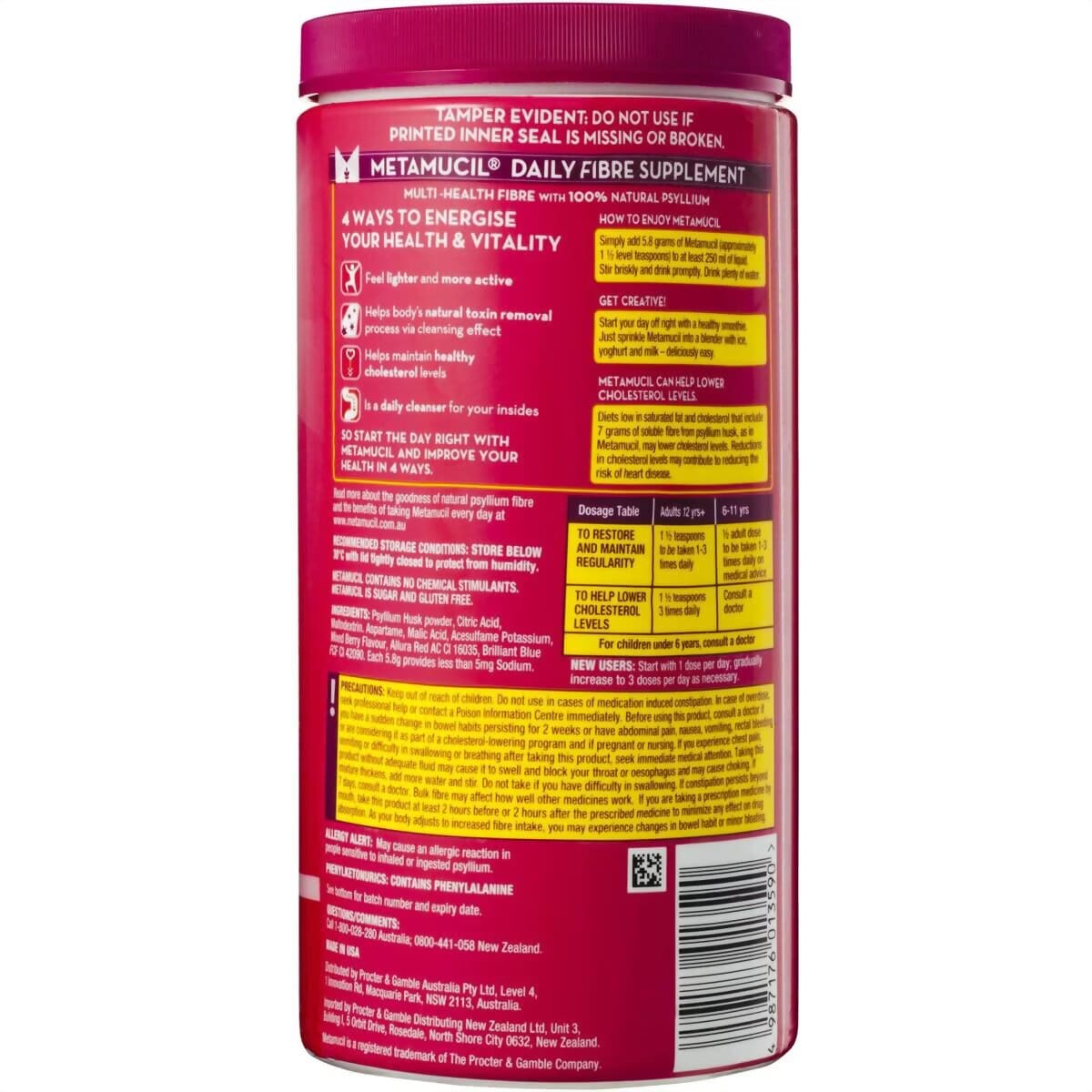 Metamucil Is A Multi-Health Fibre Made With 100% Natural Psyllium. Take Metamucil daily to help maintain regularity and improves your health in 4 ways:(1) Feel lighter and more active, (2) Helps gut’s natural toxin removal process via cleansing effect, (3) Helps maintain healthy cholesterol levels, (4) Is a daily cleanser for your insides.Metamucil maintains regularity and supports a healthy gut.