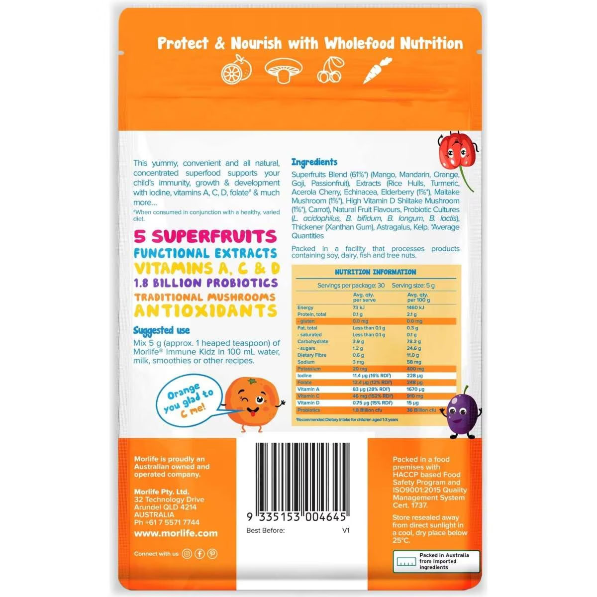 Formulated with wholefoods to support immunity, growth and development