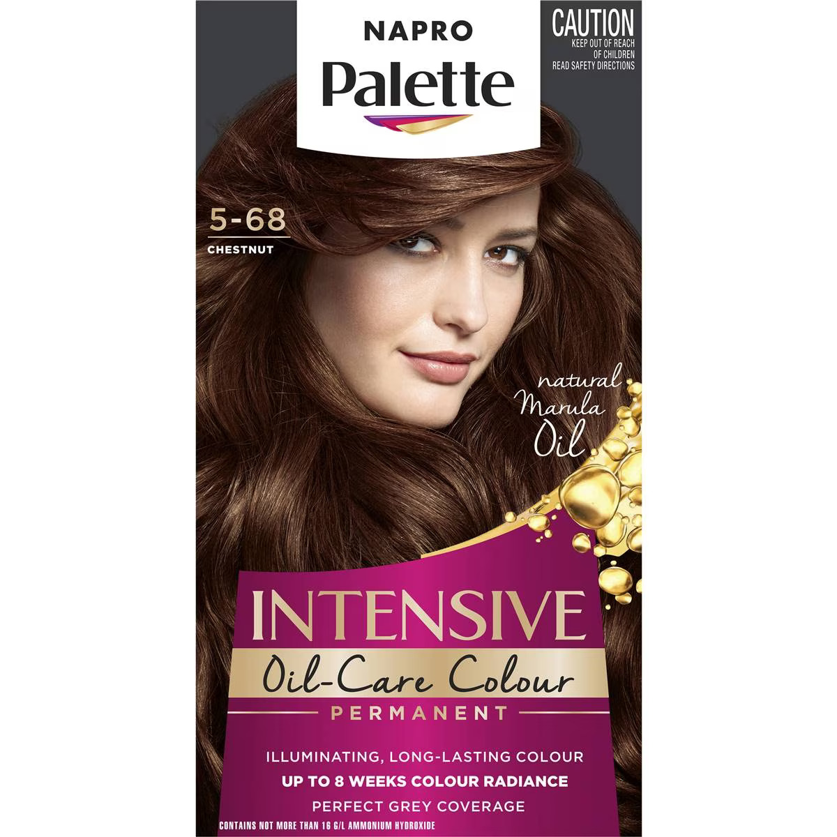 Napro Palette Intensive Creme Colour Permanent 5-68 Chestnut contains micro-oils and provides a rich, long-lasting colour, deep nourishment for an intense shine and perfect grey coverage.