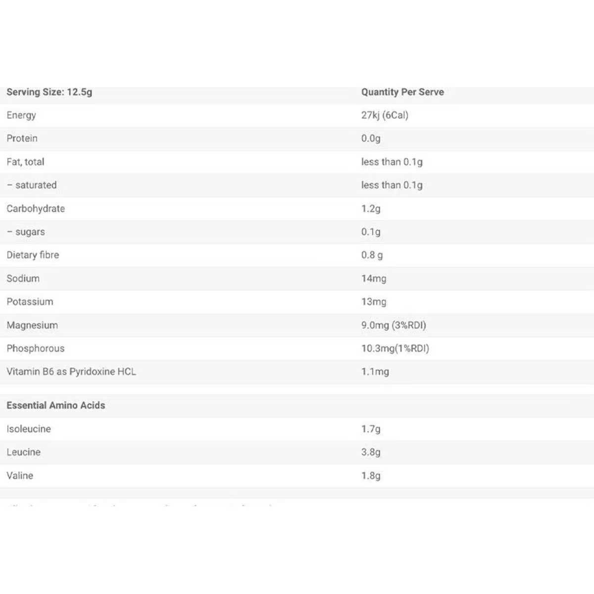 Each serve contains 8 grams of amino acids in the scientifically proven 2-1-1 ratio. This proven ratio will assist with improving endurance, reducing muscle soreness and providing an energy boost mid workout.