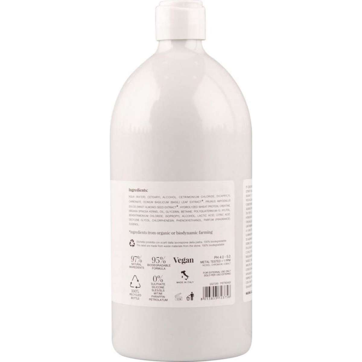 With organic extracts of Basil, with its strengthening and brightening properties, and elasticizing, nourishing, antioxidant action, this conditioner delivers intense hydration without weighing hair down, making it look instantly glossy.