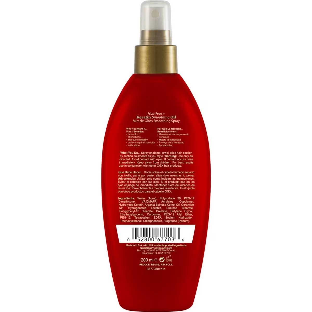 Strengthen, smooth and shine strands in one easy step with OGX Frizz-Free + Keratin Smoothing Oil Miracle Gloss Spray. This 5-in-1 product gives your hair a fresh look while saving time and money.