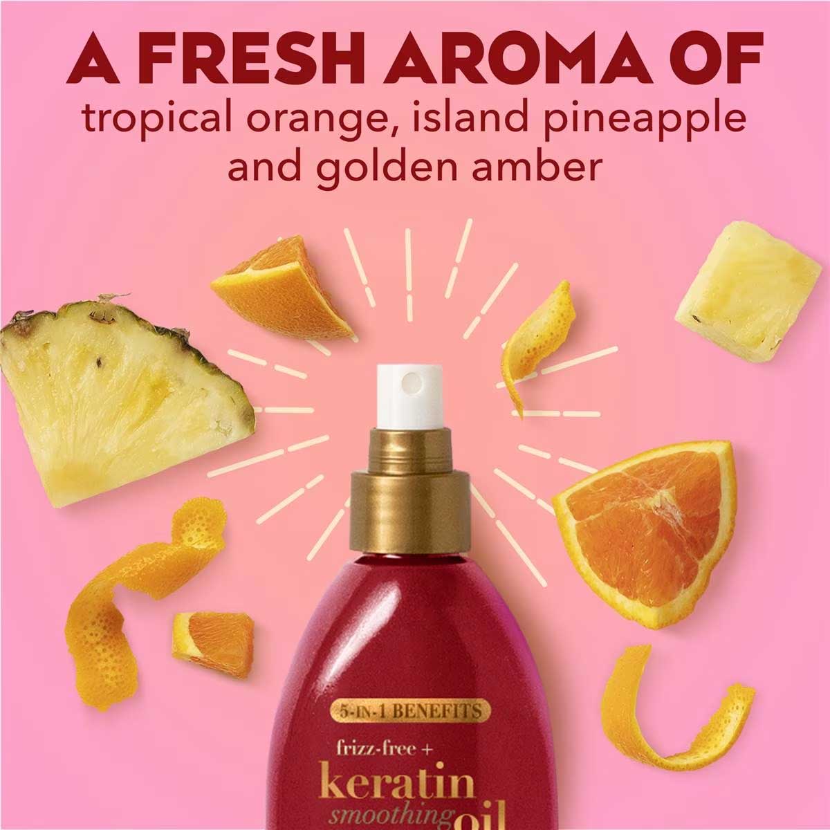 Slash your morning routine with OGX Frizz-Free + Keratin Smoothing Oil Miracle Gloss Spray