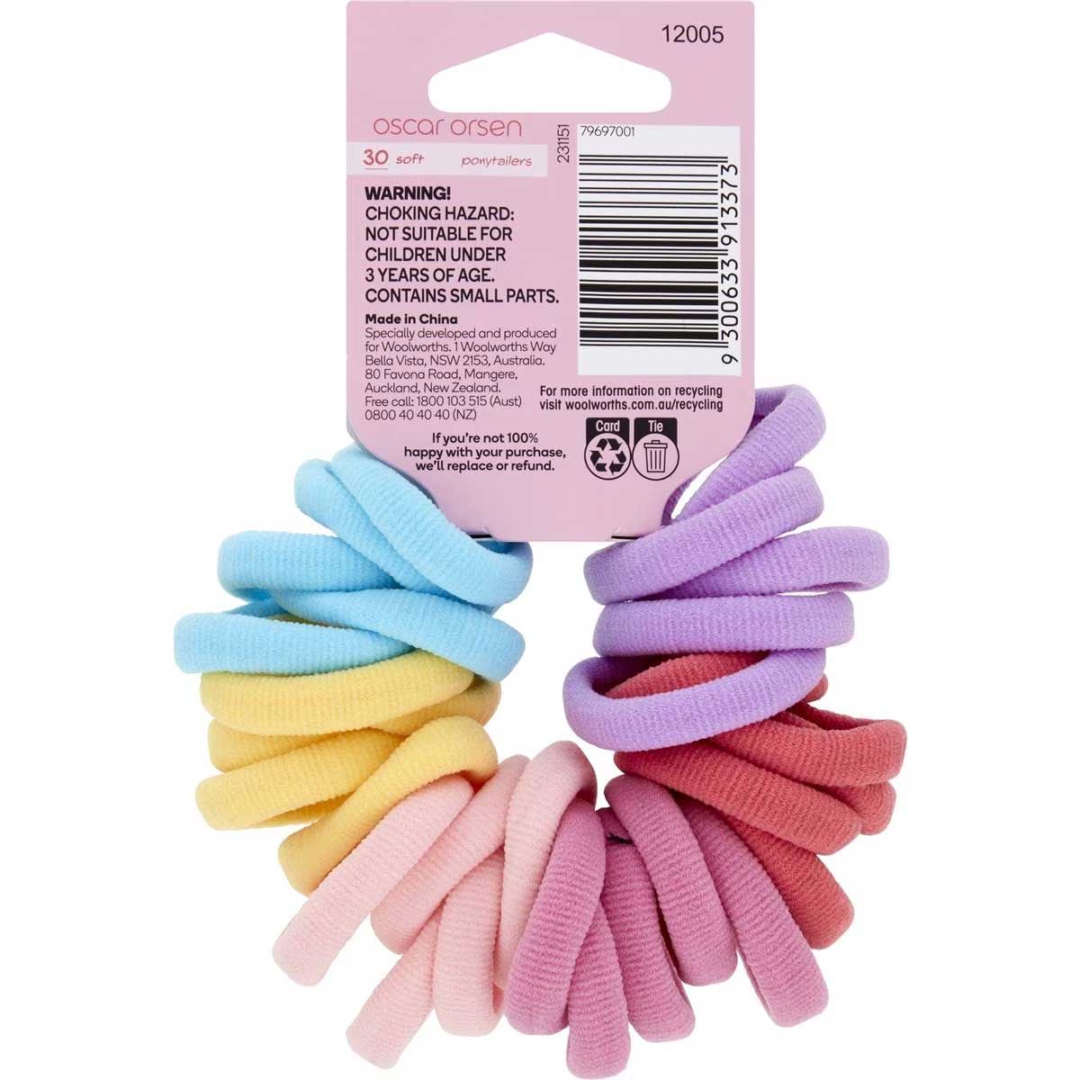 Woolworths Select Soft Ponytailers Assorted. It has no metal parts to snag the hair.
