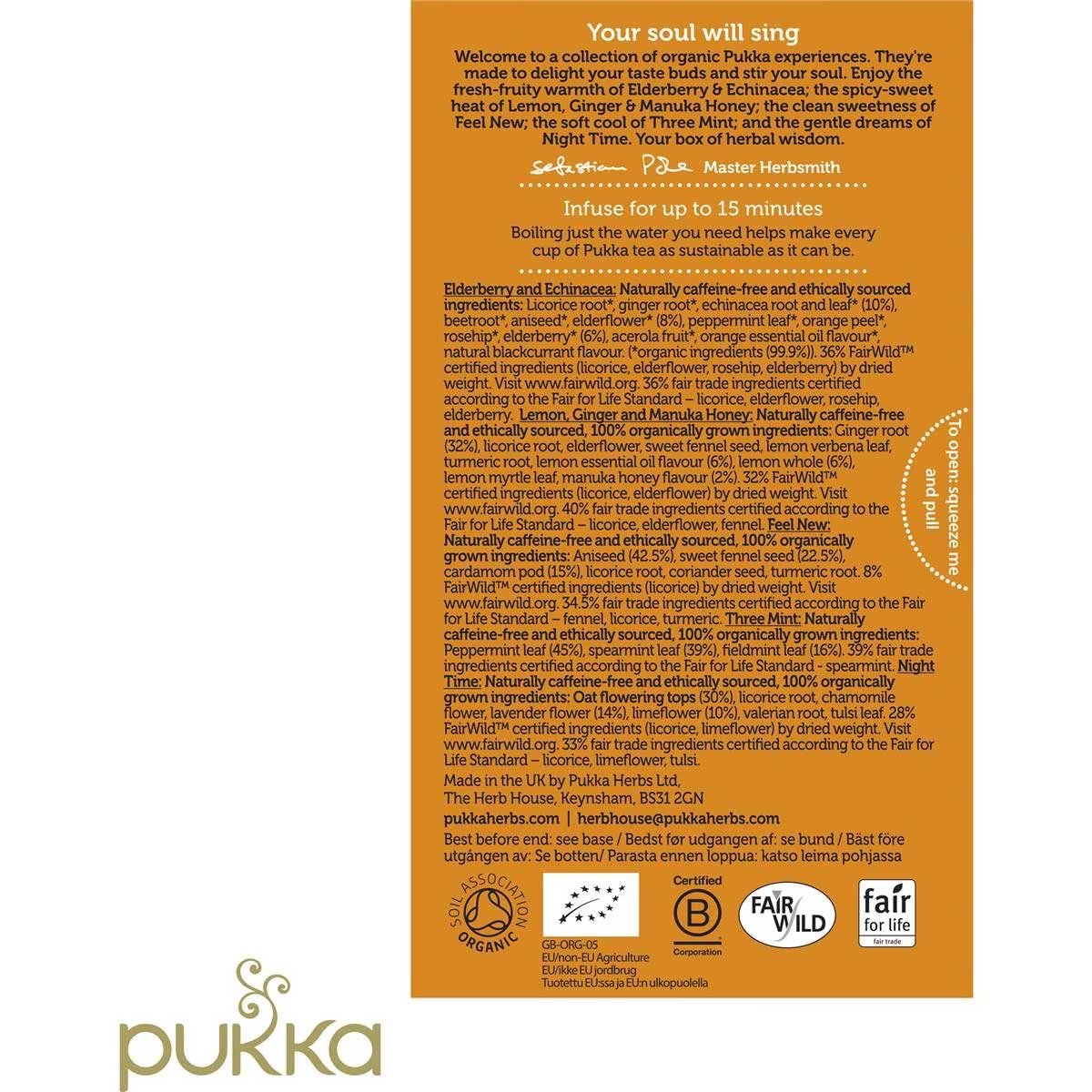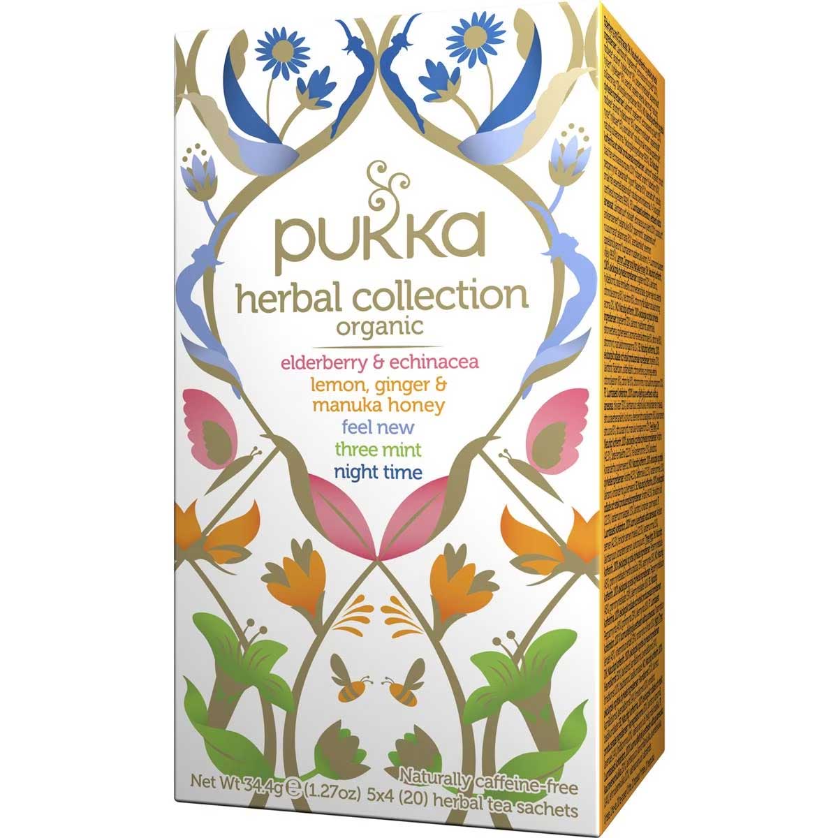 Herbal Collection, your own mini herbal adventure in a magical box of Pukka herbal teas. Five delicious, organic award-winning teas with each using three varieties of incredible organic herbs to create exceptional flavours and sensory experiences.