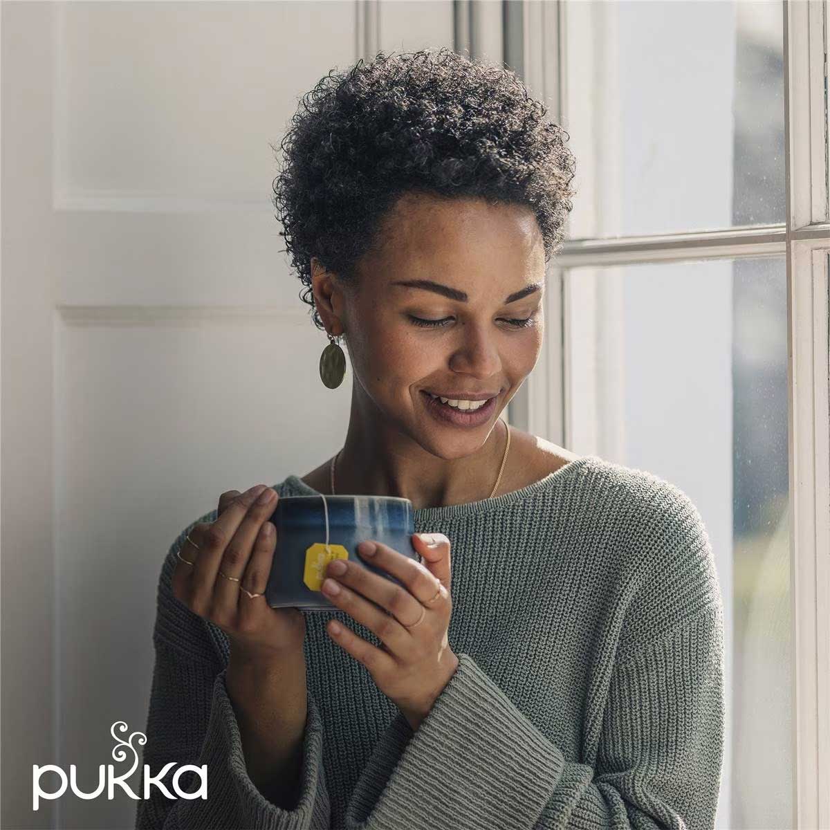 Infuse for up to 15 minutes. Boiling just the water you need helps make every cup of Pukka tea as sustainable as it can be. Every Pukka plastic-free tea bag comes in its own recyclable envelope to retain the essential oils in our organic herbs. Each bag has two chambers, allowing these incredible herbs to flow and release the full potency in your cup. To help the flavours to fully disperse, pour boiling water directly on the bag. Every herb loves the water, so leave them to steep for the perfect brew. And remember to boil just the amount of water you need to make your cuppa as environmentally-friendly as it can be. Deliciousness knows no deeper colour.