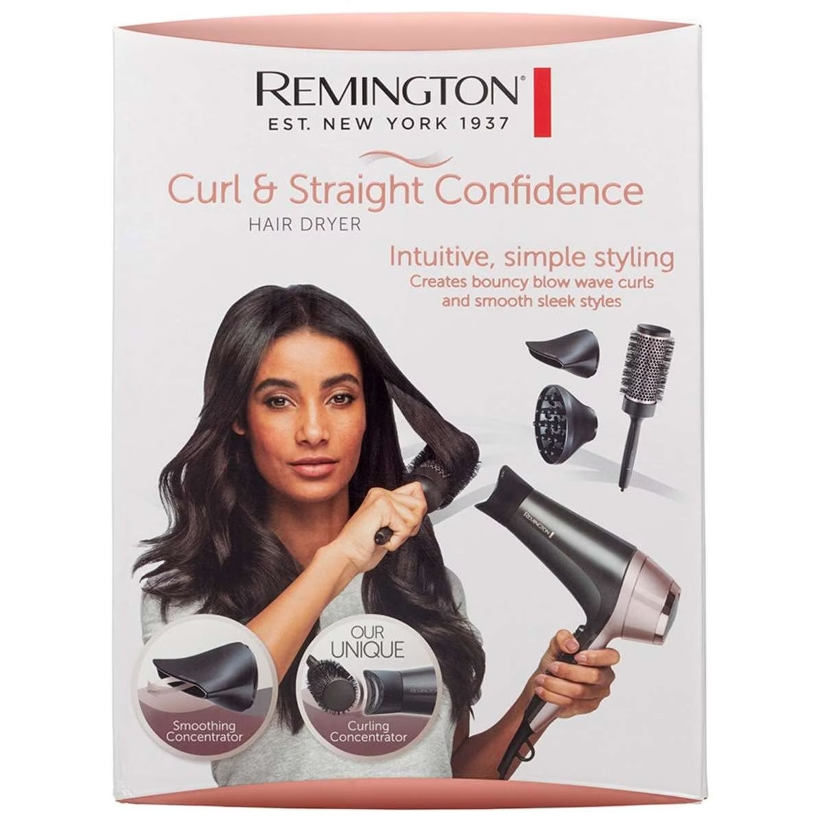 The Curl & Straight Confidence Hair Dryer is the combination of fast drying with easy styling.