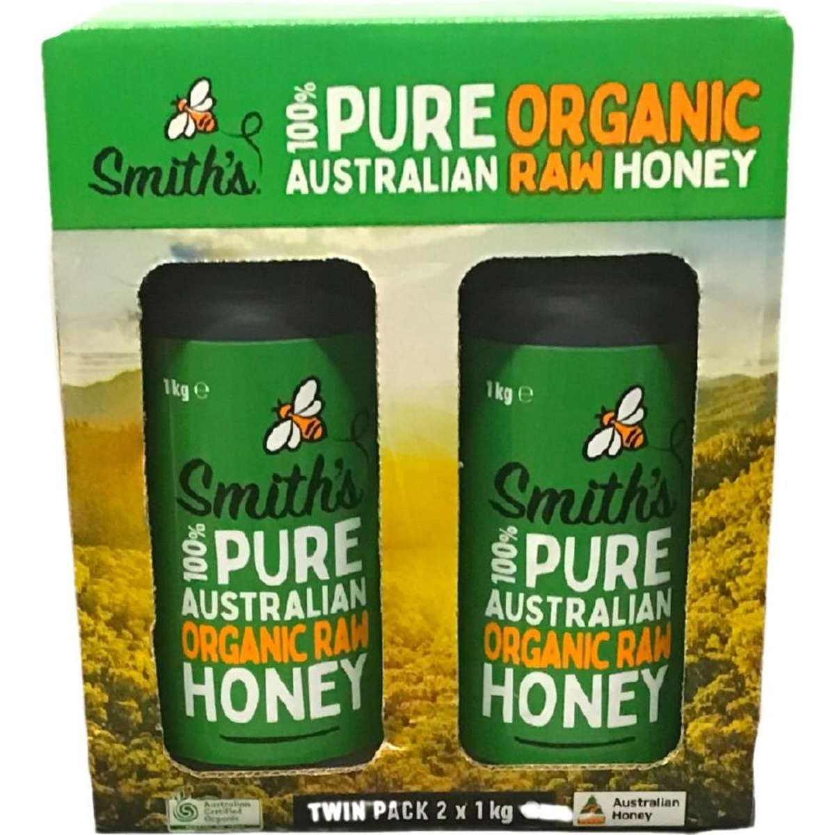 Smith’s 100% Australian Organic Honey 2 x 1KG Squeeze Bottle