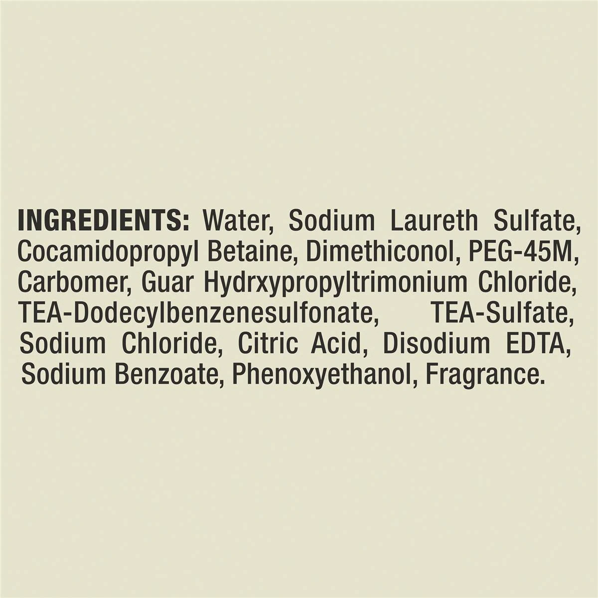 Water, Sodium Laureth Sulfate Sodium C12-13 Pareth Sulfate*, Cocamidopropyl Betaine, Dimethiconol, Peg-45M, Carbomer, Guar Hydroxypropyltrimonium Chloride, Tea-Dodecylbenzenesulfonate, Tea-Sulfate, Cyclotetra siloxane, Sodium Chloride, Citric Acid, Disodium Edta, Sodium Benzoate, Phenoxyethanol, Fragrance. *Used Interchangeably.