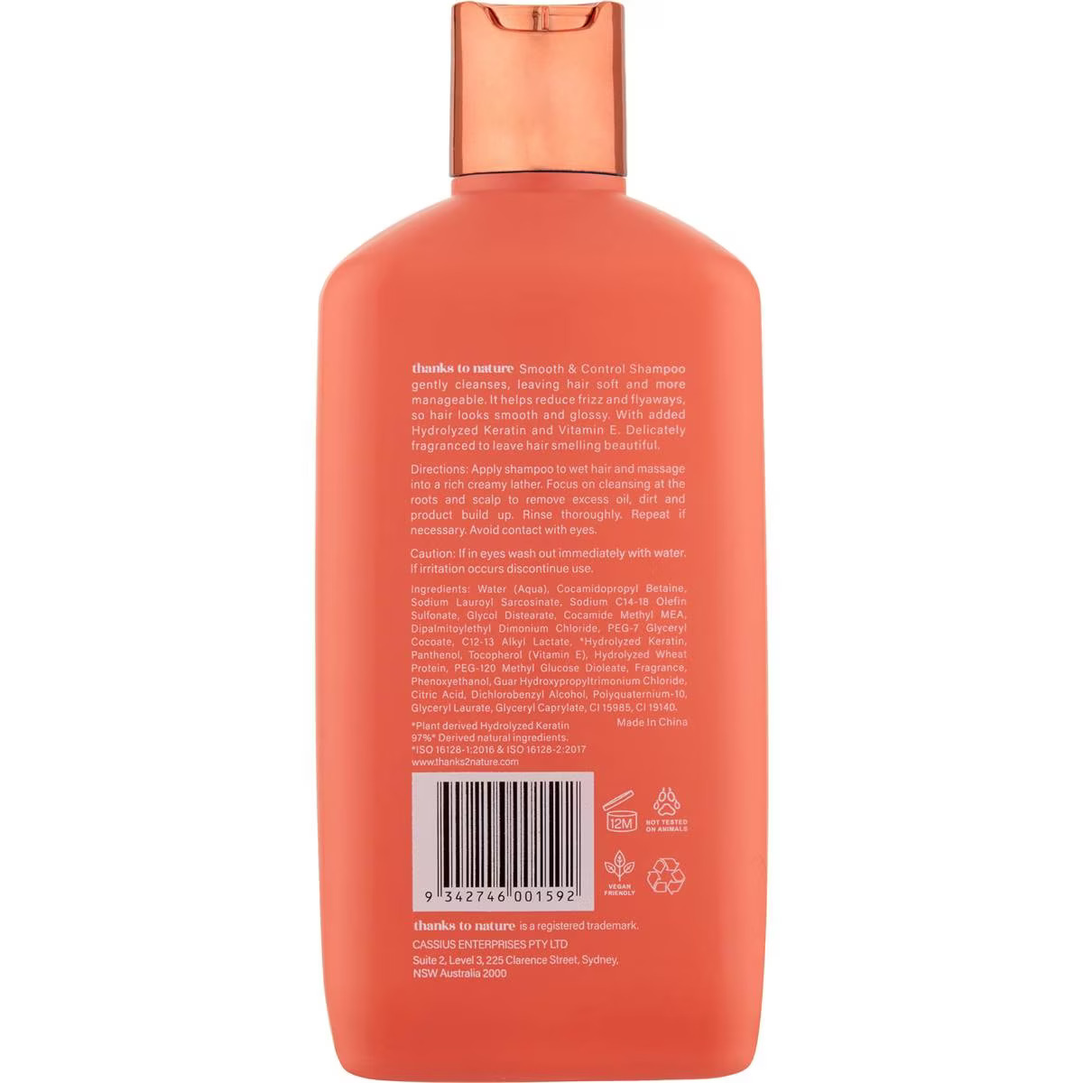 Thanks To Nature Smooth & Control Shampoo gently cleanses, leaving hair soft and more manageable.