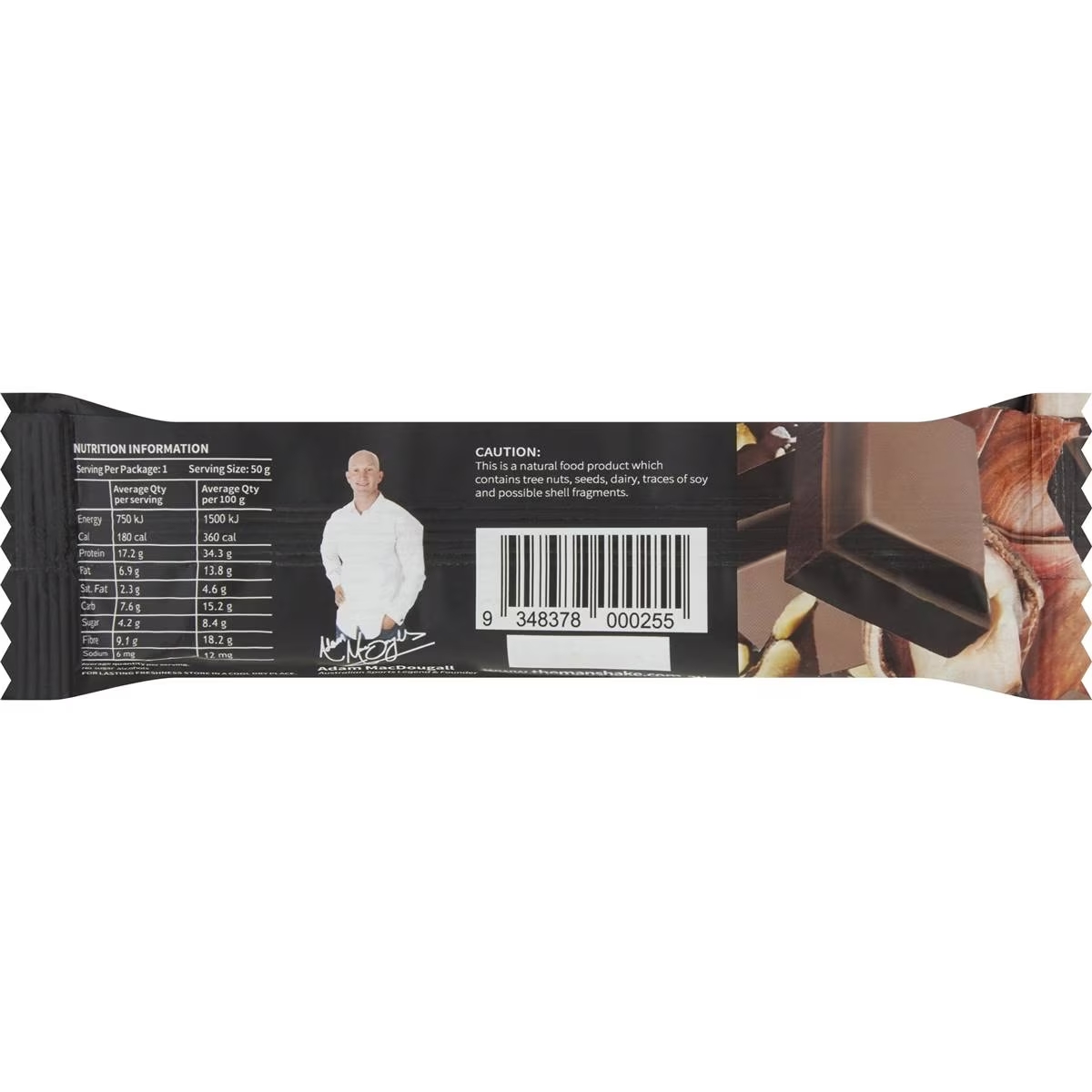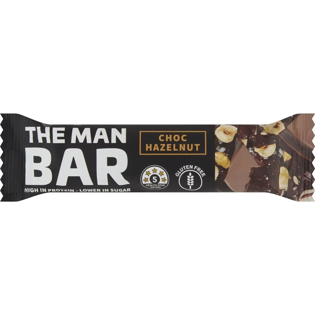 The Choc Hazelnut Man Bar is high protein snack bar that’s low in sugar – perfect when your afternoon sugar cravings hit. It’s a nougat based bar that contains The Man Shake protein blend with choc chunks, it’s delicious and great for you!