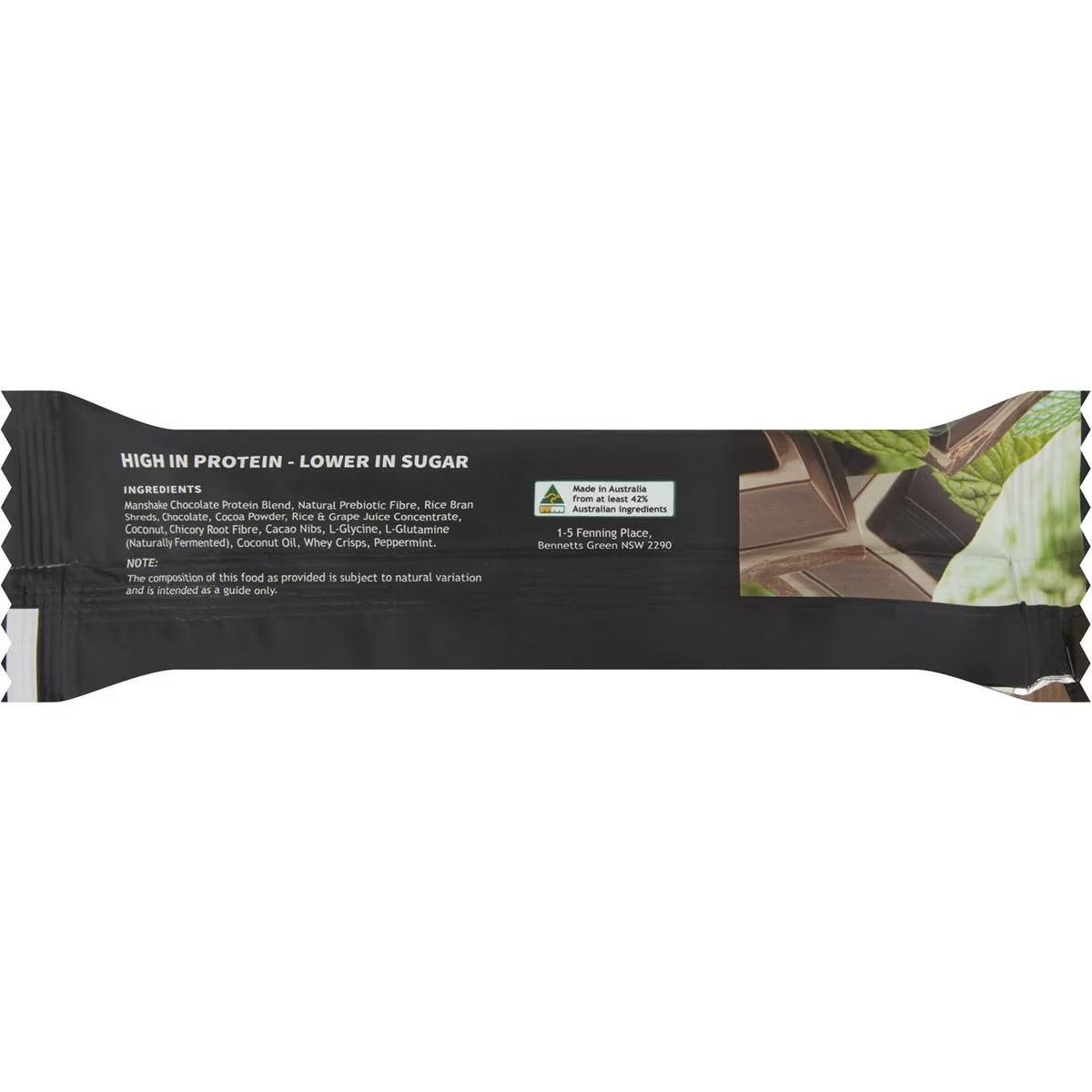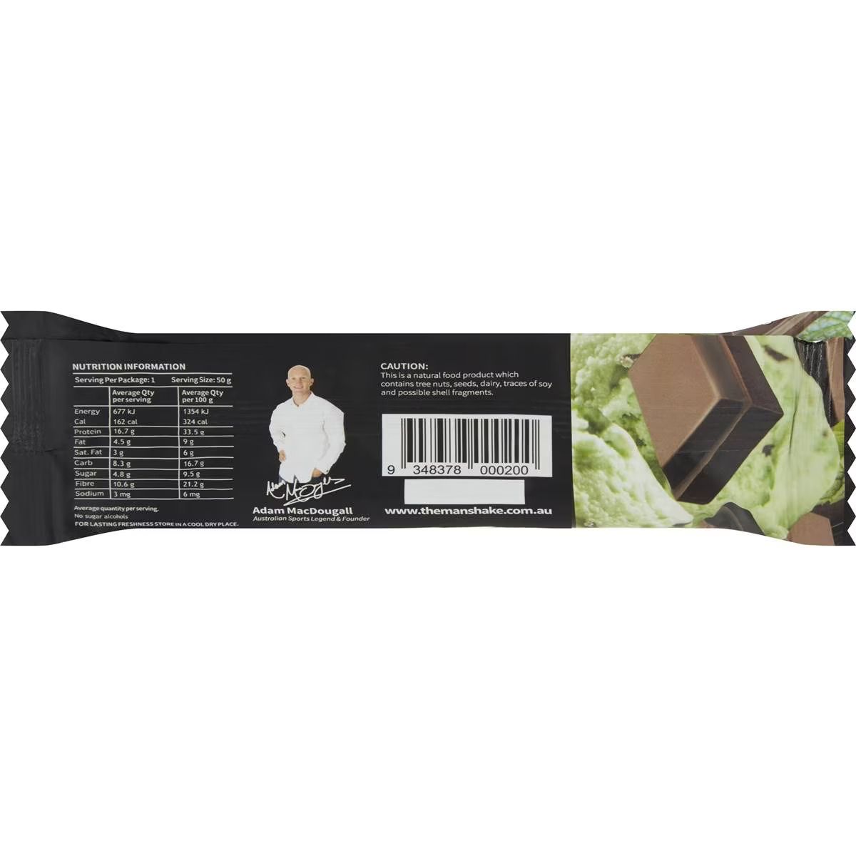 The Mint Choc Man Bar is high protein snack bar that’s low in sugar – perfect when your afternoon sugar cravings hit. It’s a nougat based bar that contains The Man Shake protein blend with choc chunks, it’s delicious and great for you!