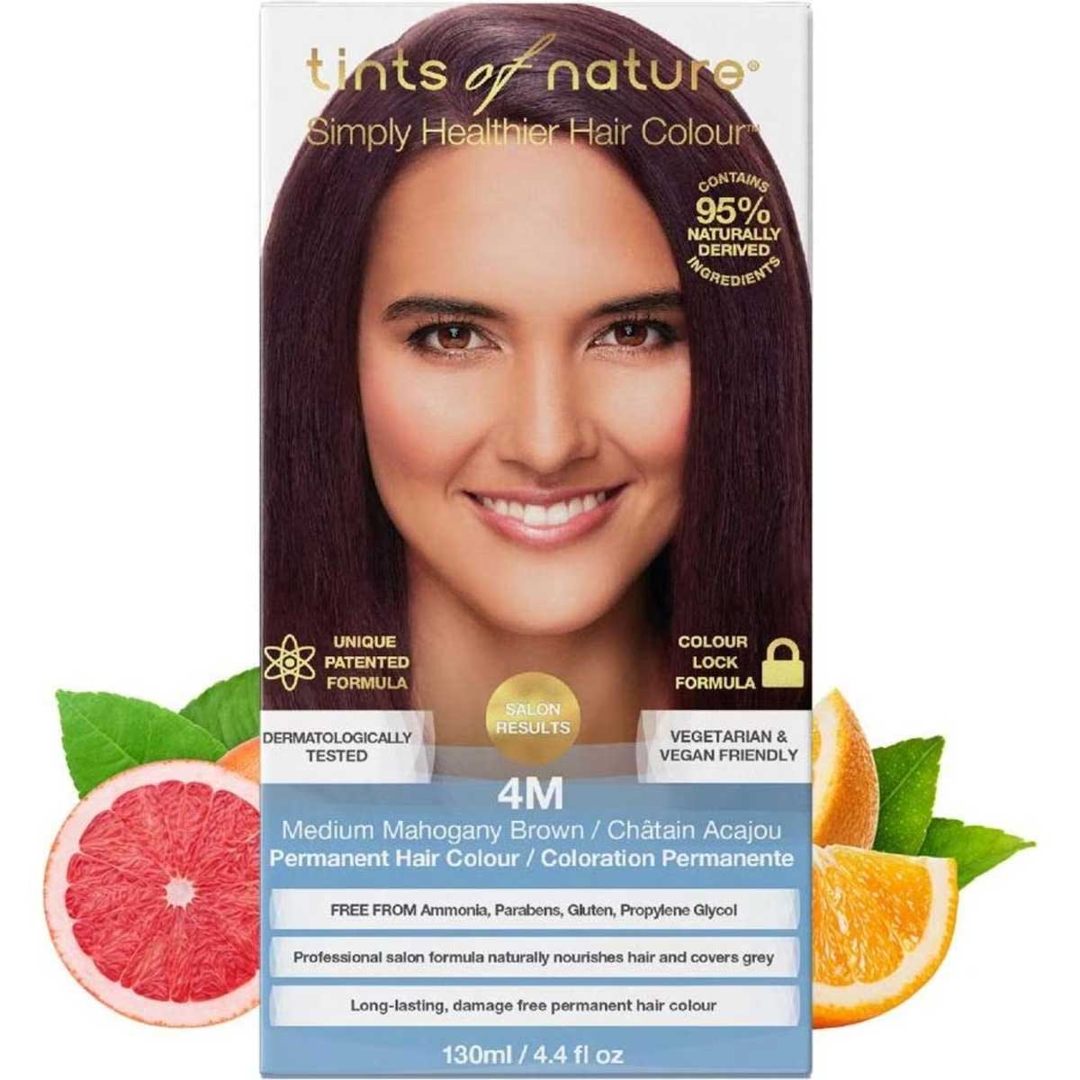 Red and violet hints in a mahogany permanent home hair colour. Tints of Nature Permanent Hair Colour is a salon quality hair dye with a patented plant oil base, free from Ammonia, Resorcinol, Parabens and Silicone. It is enriched with natural and organic ingredients for a healthy home hair colour experience without damaging your hair.