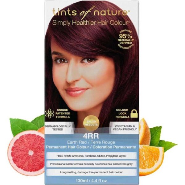 Natural, multi-tonal red brunette permanent home hair colour. Tints of Nature Permanent Hair Colour is a salon quality hair dye with a patented plant oil base, free from Ammonia, Resorcinol, Parabens and Silicone. It is enriched with natural and organic ingredients for a healthy home hair colour experience without damaging your hair.