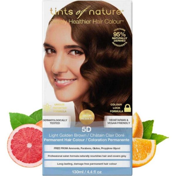 A bronzed light brown permanent home hair colour. Tints of Nature Permanent Hair Colour is a salon quality hair dye with a patented plant oil base, free from Ammonia, Resorcinol, Parabens and Silicone. It is enriched with natural and organic ingredients for a healthy home hair colour experience without damaging your hair.