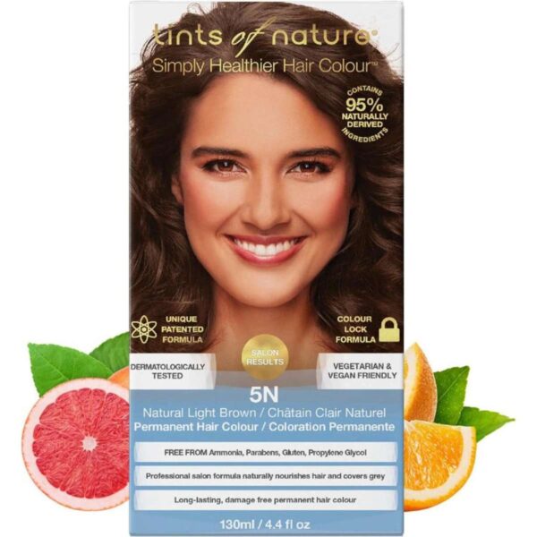 A natural glossy light brown permanent home hair colour. Tints of Nature Permanent Hair Colour is a salon quality hair dye with a patented plant oil base, free from Ammonia, Resorcinol, Parabens and Silicone. It is enriched with natural and organic ingredients for a healthy home hair colour experience without damaging your hair.
