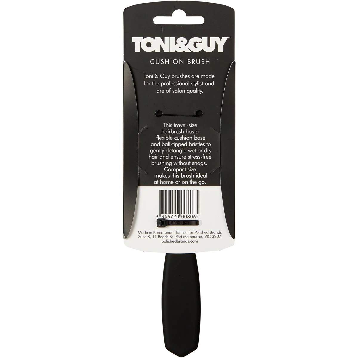 TONI&GUY Cushion Brush FOR ALL HAIR TYPES AND LENGTHS With soft touch one-piece handle to eliminate hair catching and pulling. This travel-size hairbrush has a flexible cushion base and ball-tipped bristle to gently detangle wet or dry hair and ensure stress-free brushing without snags. Compact size makes this brush idea at home or on the go.