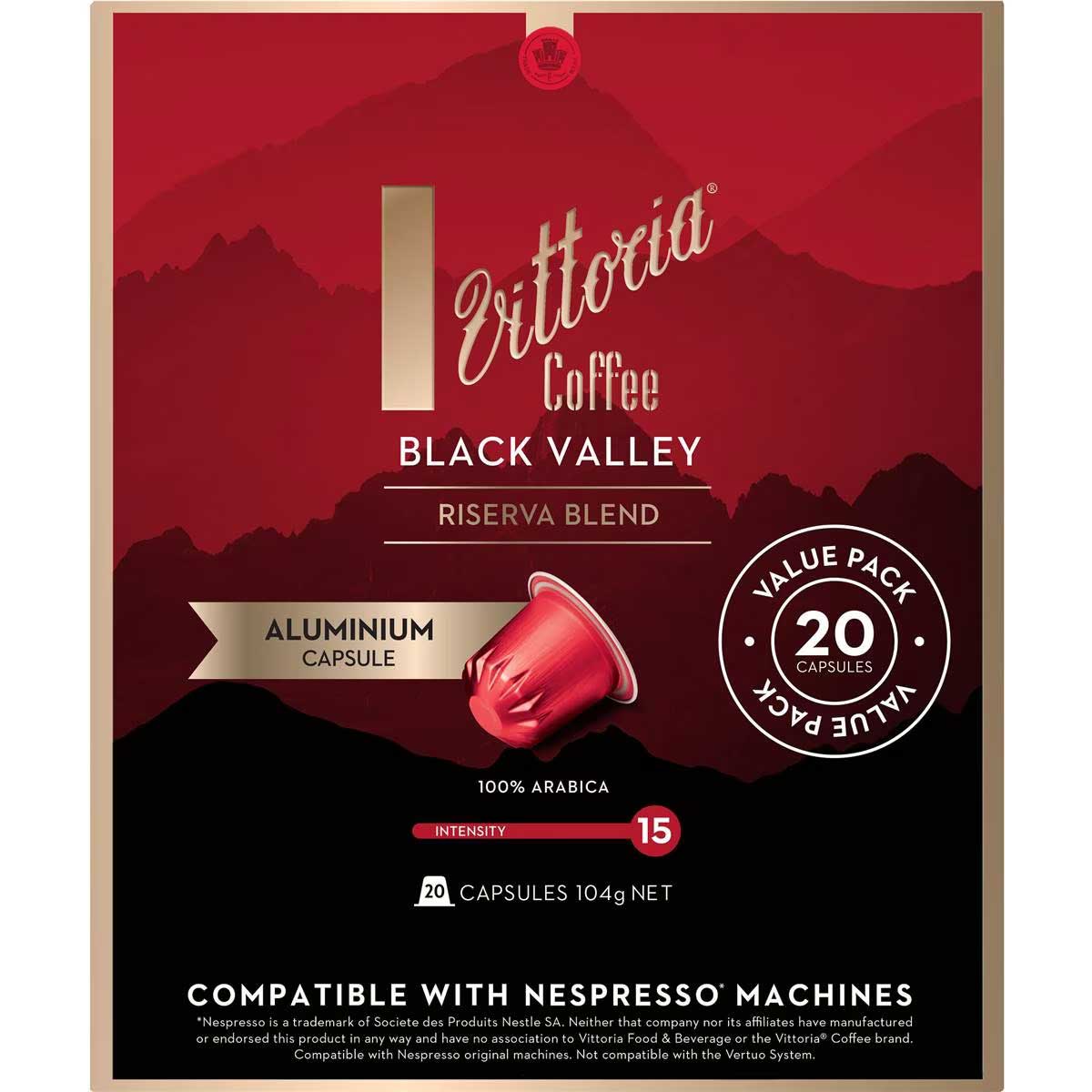 *Nespresso is a trademark of Societe des Produits Nestle SA. Neither that company nor its affiliates have manufactured or endorsed this product in any way and have no association to Vittoria Food & Beverage or the Vittoria® Coffee brand. Compatible with Nespresso original machines (not compatible with the Vertuo System).