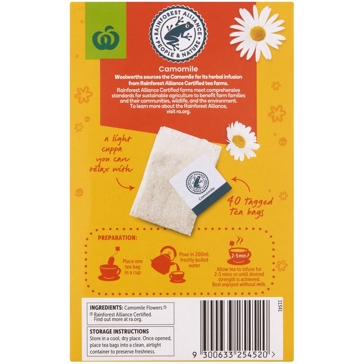 Woolworths sources the camomile for its herbal infusions from Rainforest Alliance Certified tea farms.