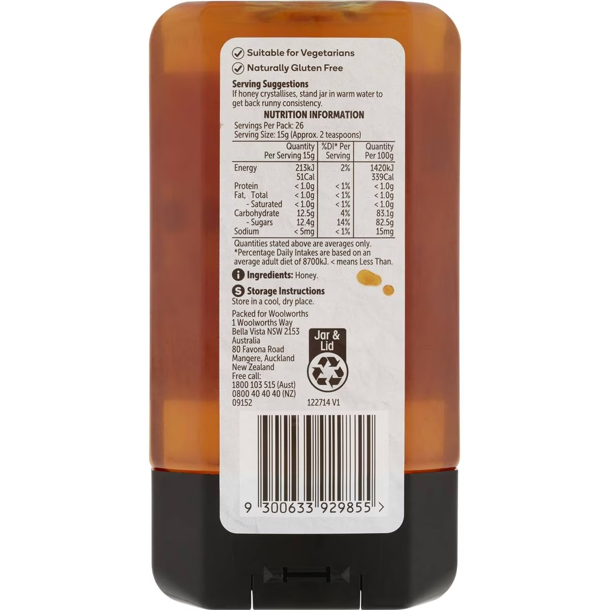 Woolworths Pure Blend Honey has a malty, mild floral flavour and is 100% natural.